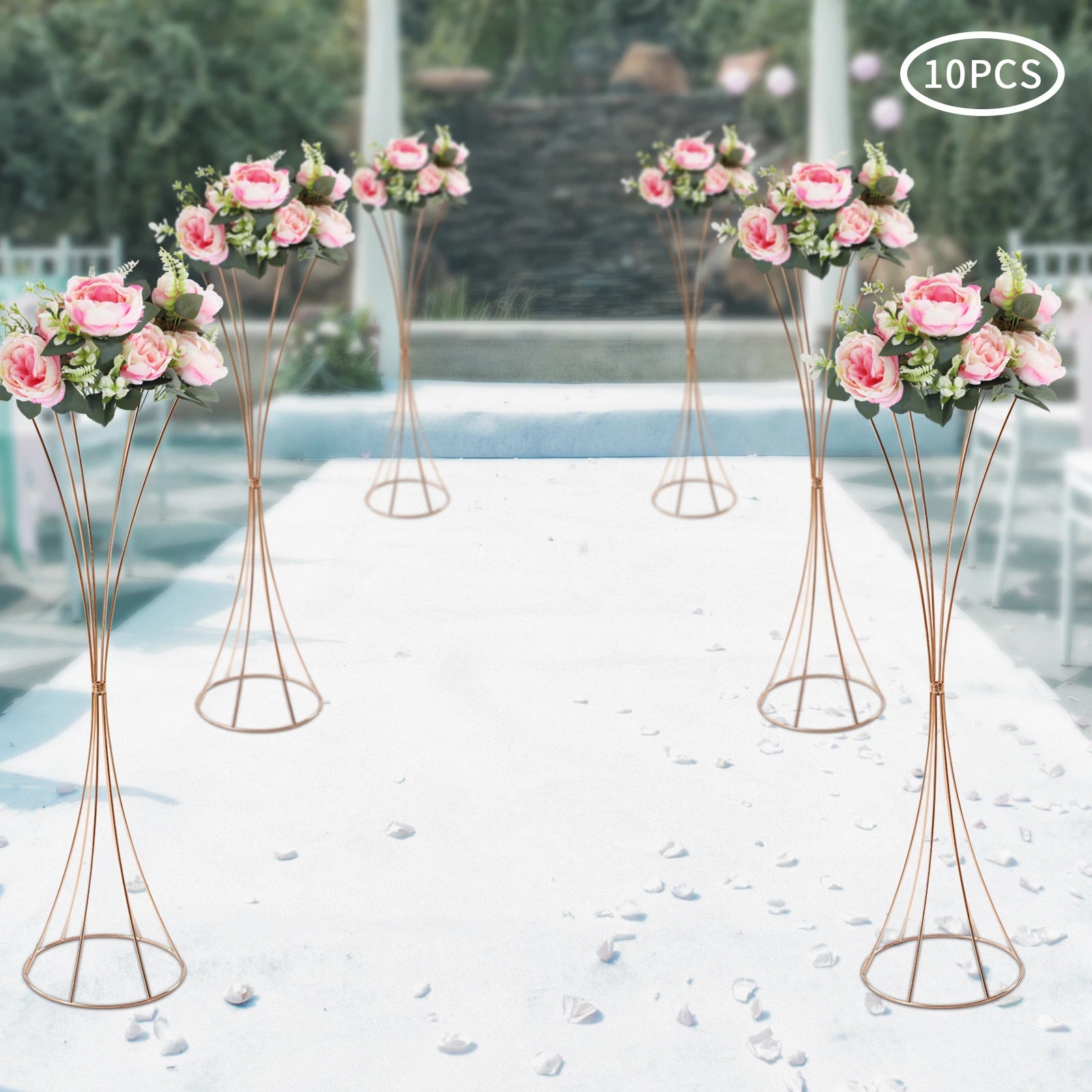 10 Pcs Gold Centerpieces for Table Wedding, 31.5in Tall Metal Trumpet Vase, Road Lead for Wedding Party Dinner Centerpiece
