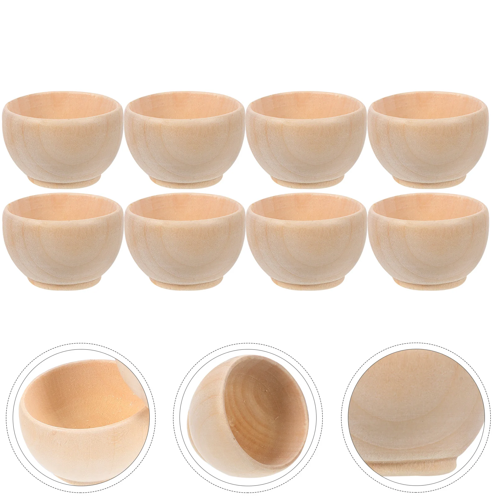 10 Pcs Wooden Bowl Toy Felt Small Unfinished Bowls Mini Craft Material DIY Cutlery Child