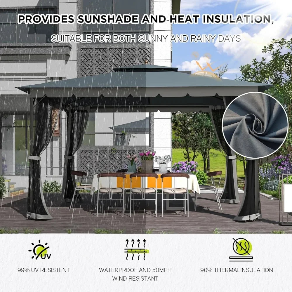 10x12 Gazebo with Mosquito Netting,Gazebo Canopy Tent with Dual Air Roof, Sturdy Metal Outdoor Patio GazeboPatio Canopy Gazebo