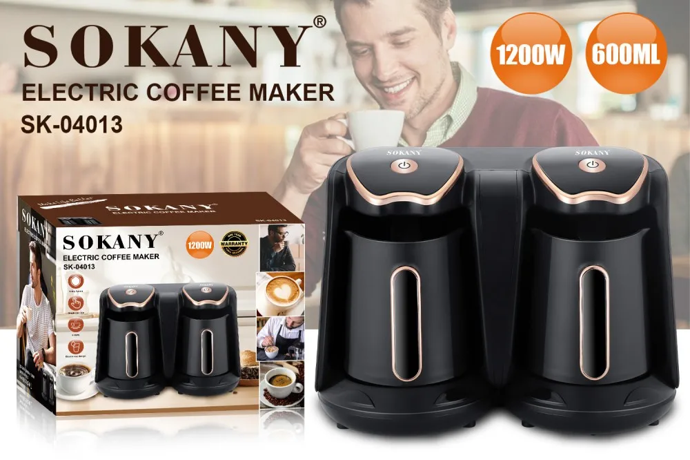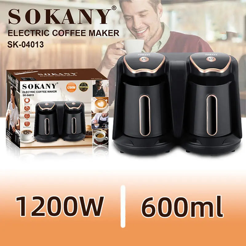 1200W Turkish Coffee Pot,600ml Electric Drip Coffee Maker Machine,Double Pot Design, Household Office Milk Coffee Tea Pot