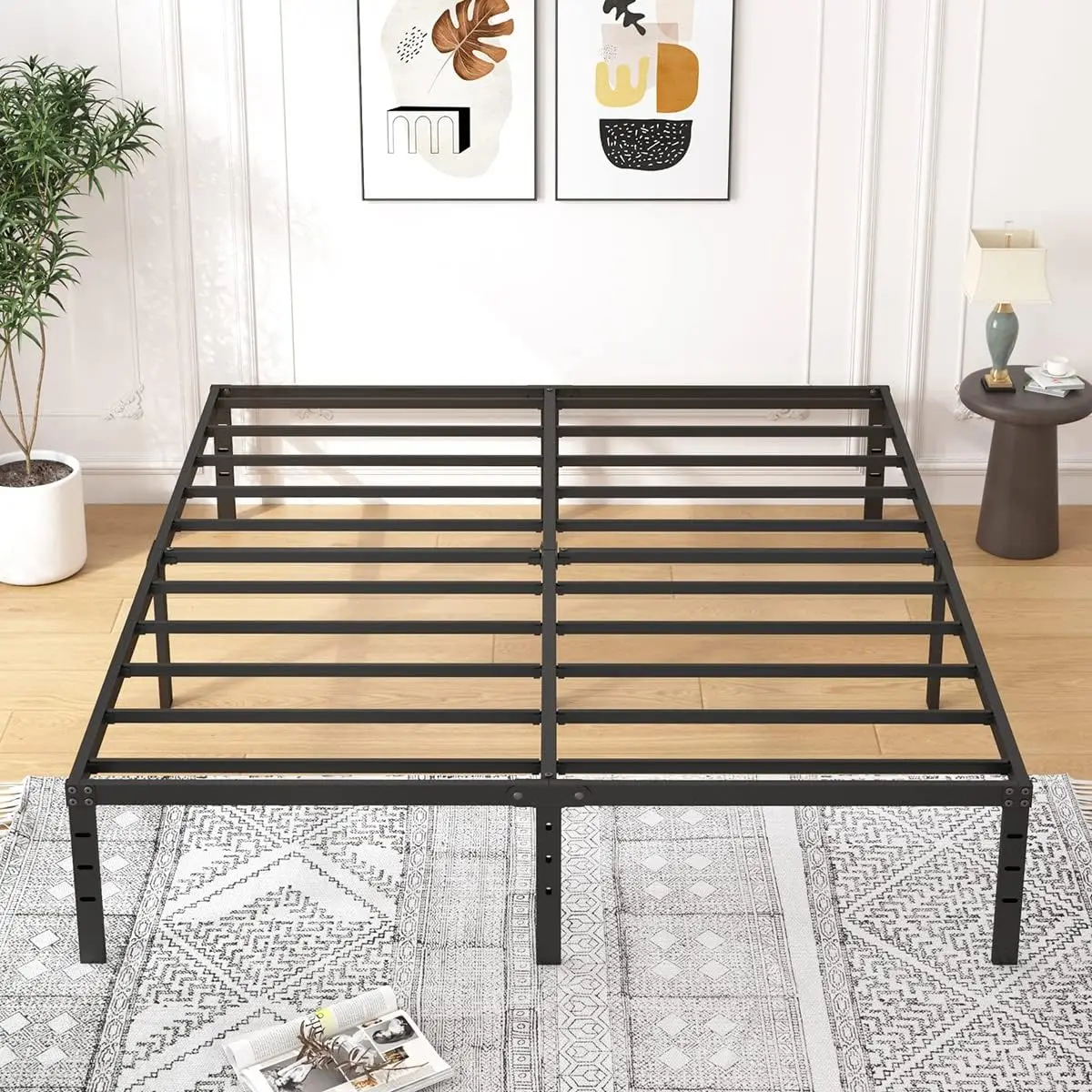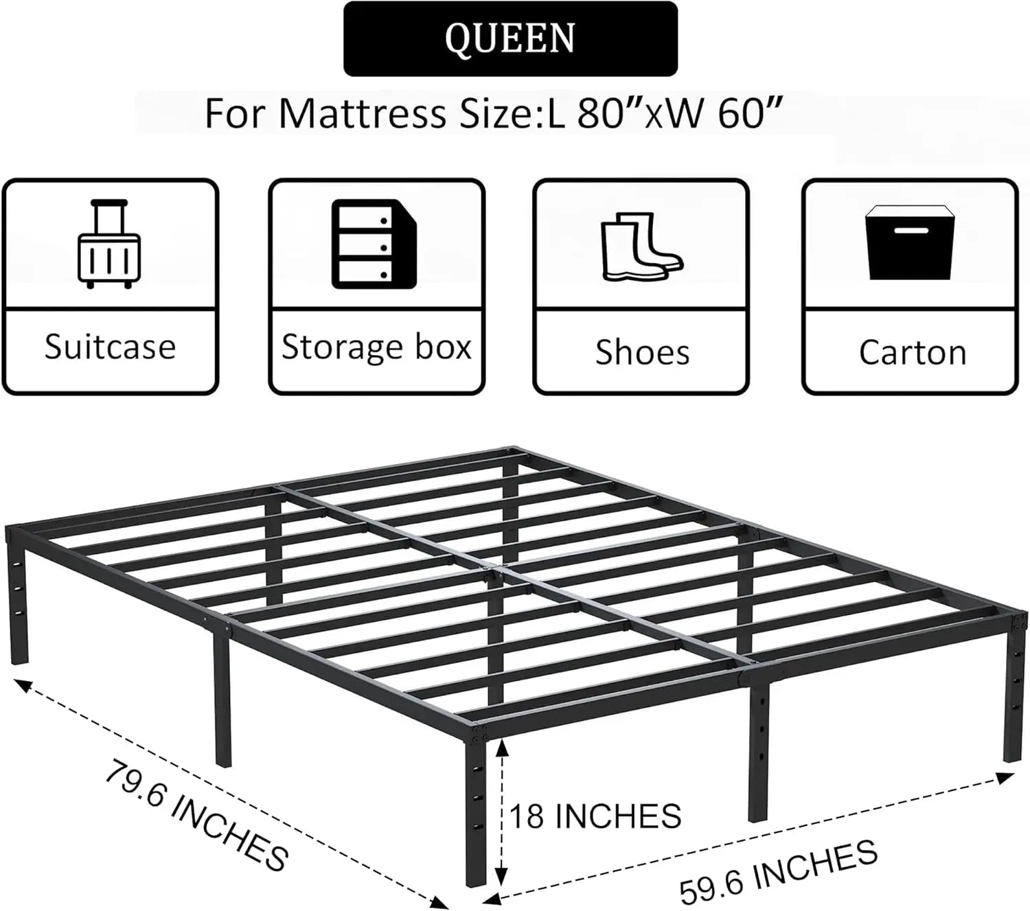 18 Inch Metal Bed Frame Queen Size - Black Basic Steel Slats Platform, Easy Assembly Heavy Duty Noise Free Bedframes, No Box Spring Needed