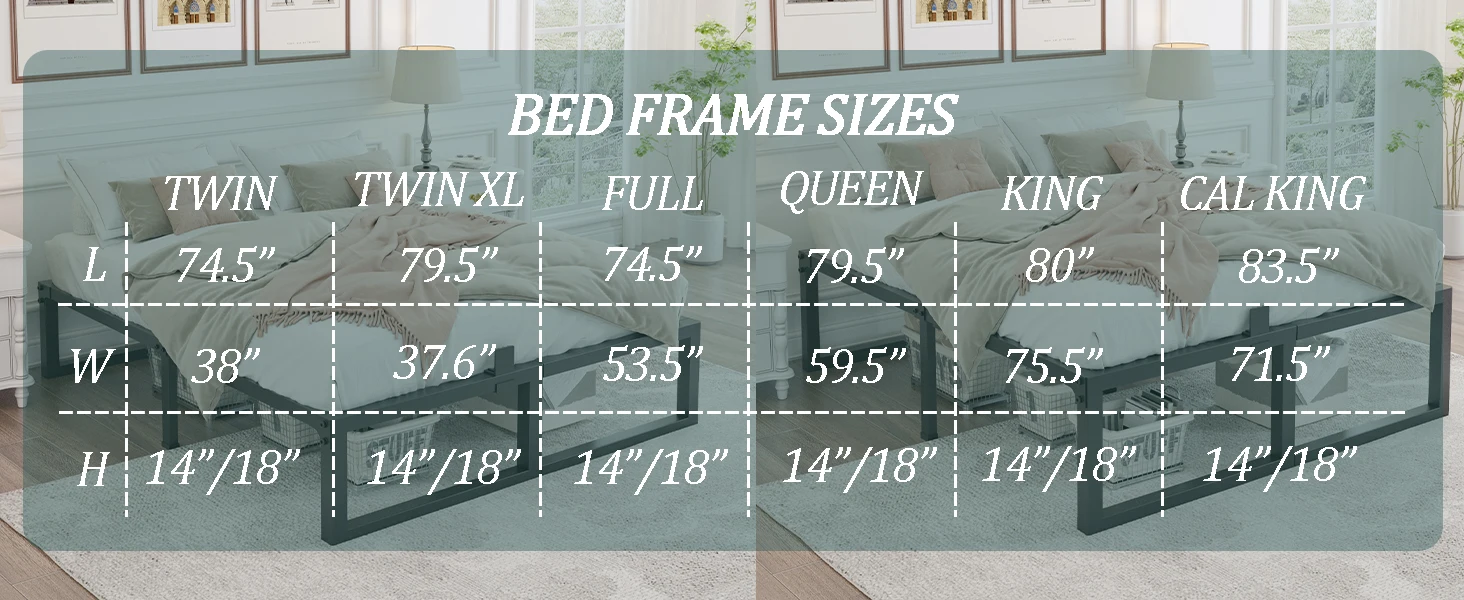 Easy Assembly Yitong Angel 14/18 inch Metal Heavy Duty Bed Frame