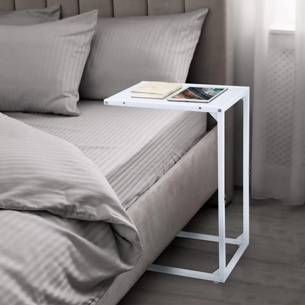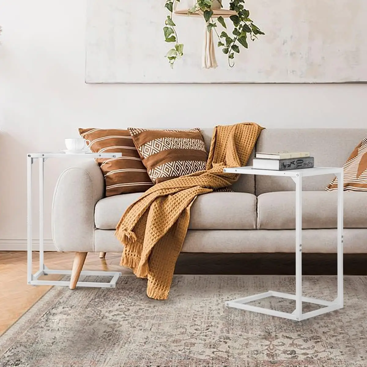 The tea table living room 2-piece set measures 15.75 inches in length, 11.81 inches in width, and 27.55 inches in height. Two sofa side tables adopt a C-shaped design, which can easily slide into the sofa or under the bed.