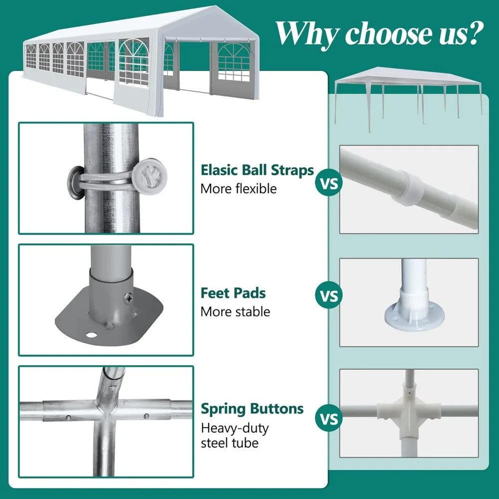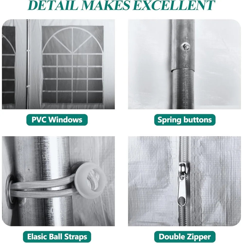 - 🏕️MORE STABLE DESIGN & UPGRADED GALVANISED FRAME: Our canopy wedding tent includes Strong Grip, Strong Rope and Sand Bags to ensure the stability of the party tent. The metal stakes ensure that the tent to the groung deeply. The outdoor canopy event tent is made of galvanised heavy-duty frame and the galvanization craftsmanship will make it more rust resistant and more durable