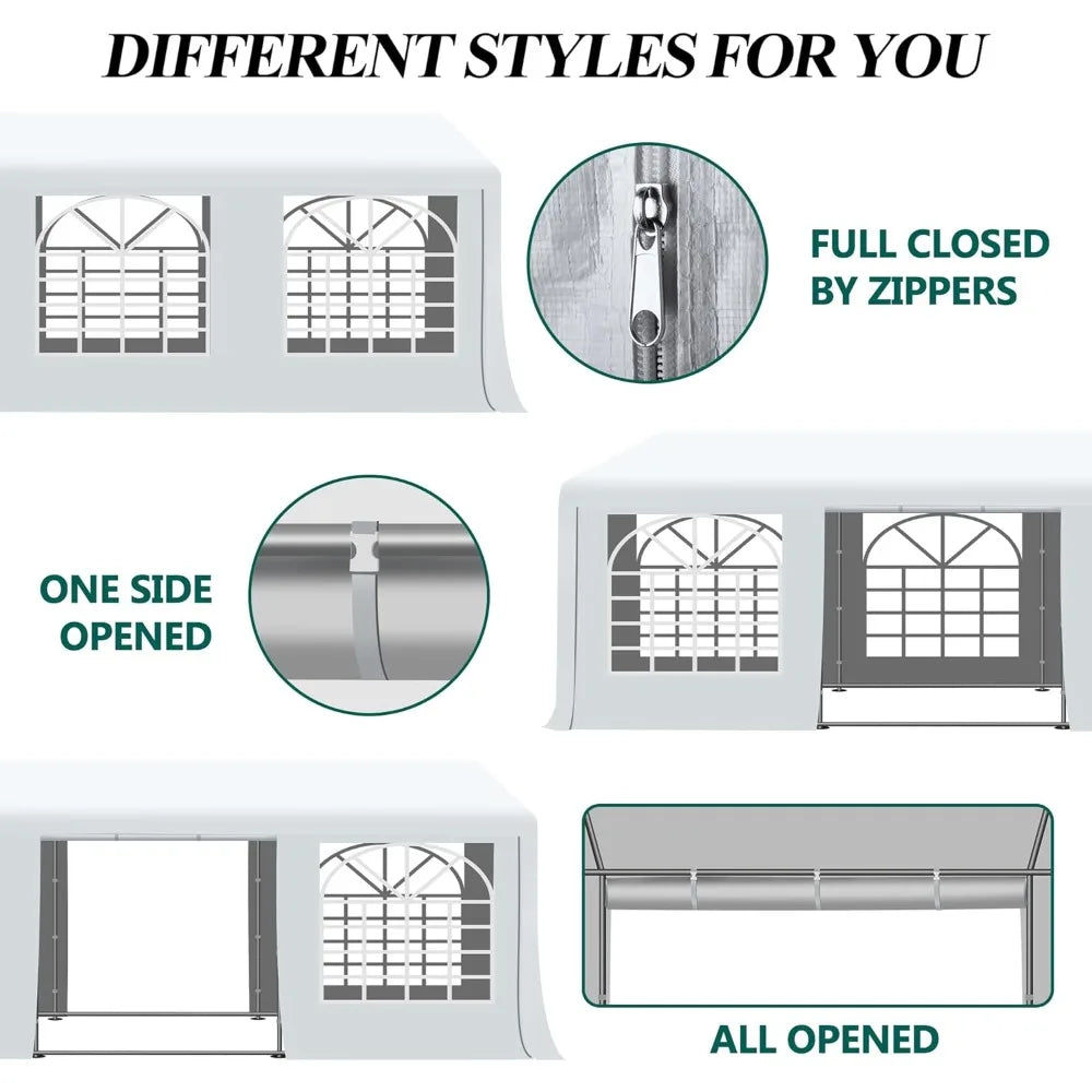 - 🏕️GOOD VENTILATION: Additional zippers have also been added to the sidewalls to make the sidewalls resemble a roll-up door, keeping the outdoor heavy-duty canopy party tent well-ventilated and providing plenty of airflow as well as for easy entry and exit during your outdoor activities