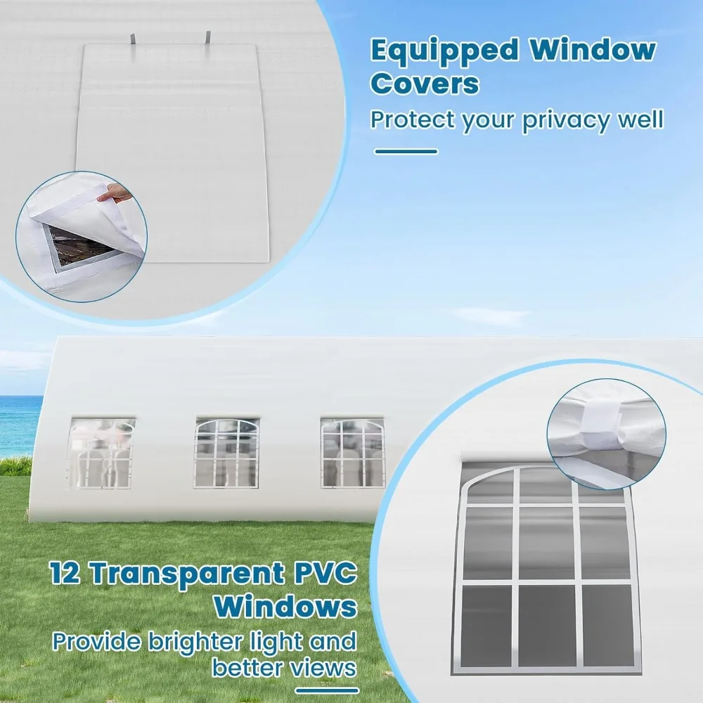20x40 Ft Heavy Duty Party Tent, Large White Event Tent with Sidewalls, Zippered Door & 12 Windows, Outdoor Wedding Tent
