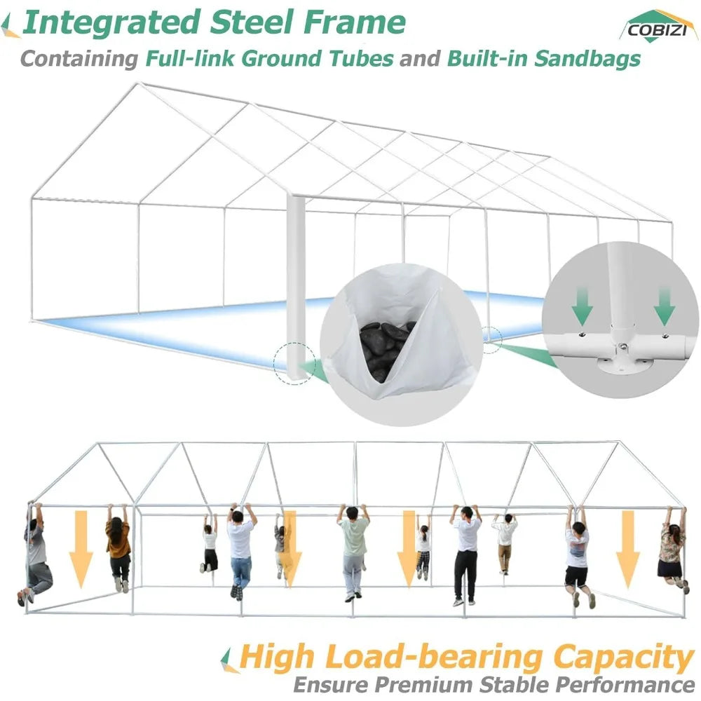 【Multifunctional Usage】Explore the versatile usage of our 20x40ft large tent. It is ideal for commercial and recreational uses. You can use it for weddings, family gathering, graduation ceremories, parties, backyard events or any large-scale events you can think of. Our tent can accommodates over 8 tables and is able to accommodate up to 100-130 people. Have an unforgettable time with party tent series!