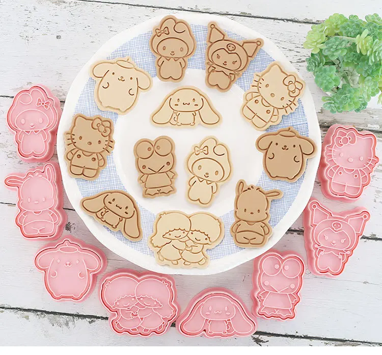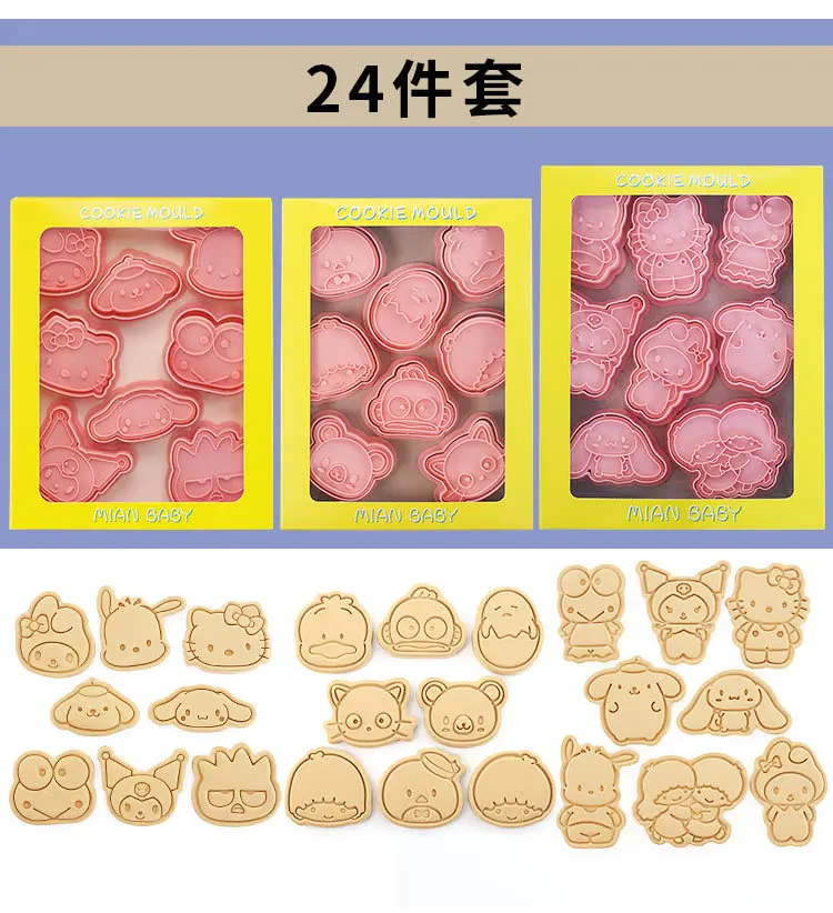 24Pcs Sanrio Hello Kitty Cartoon Cookie Mold 3D Pressable Stamp Kitchen Baking Pastry Bakeware New Year Christmas Decoration