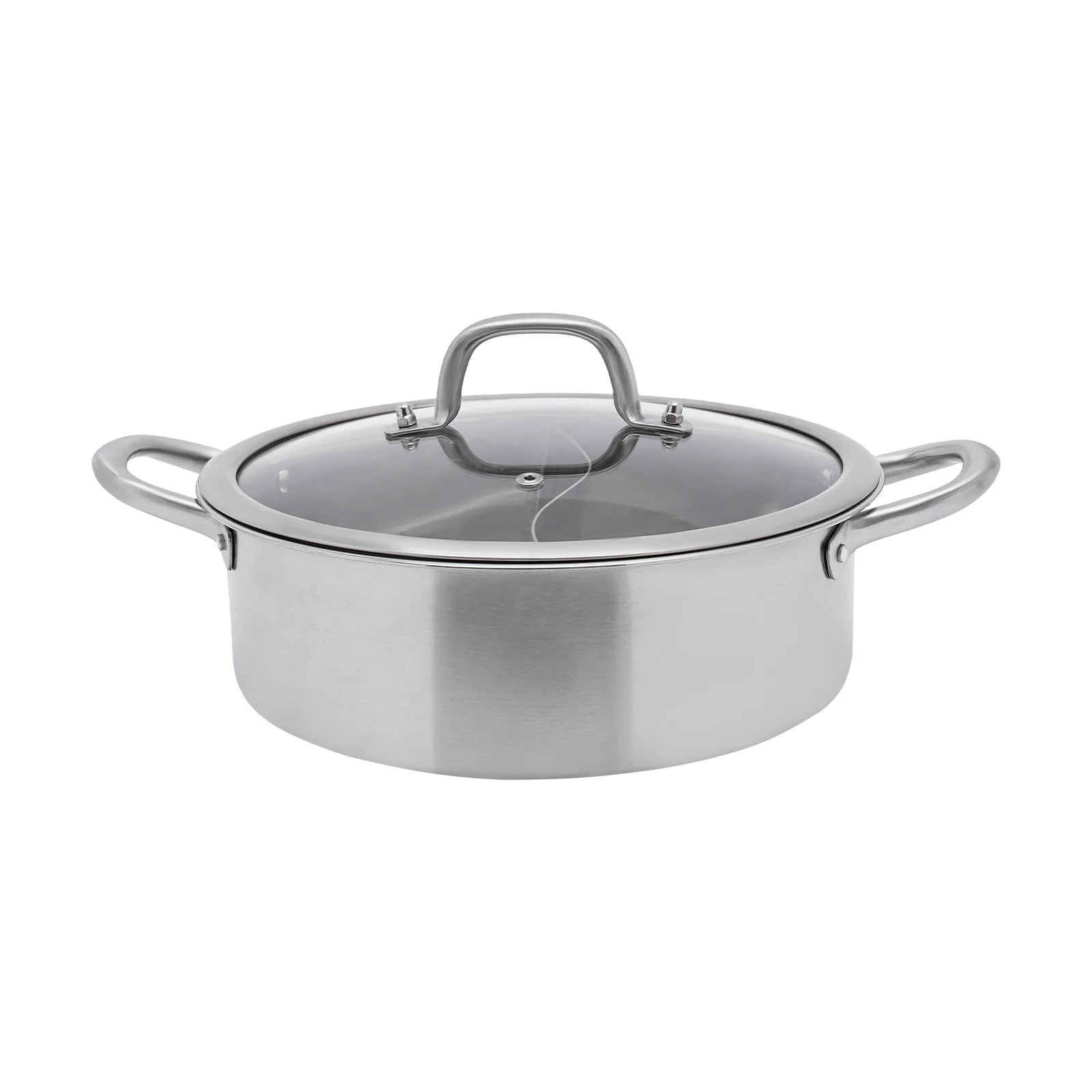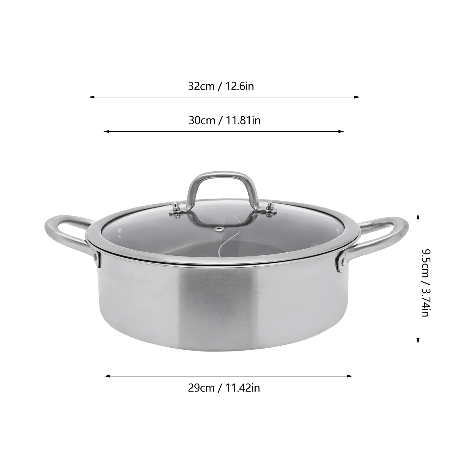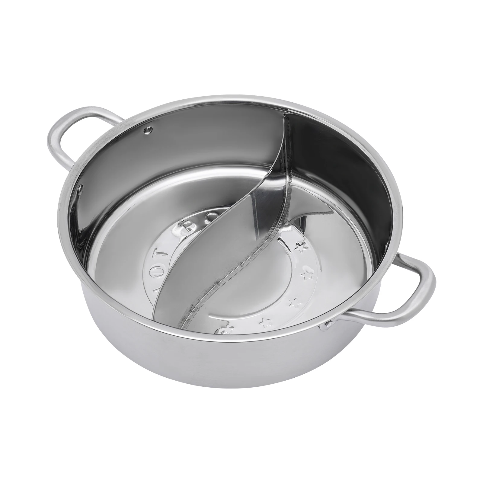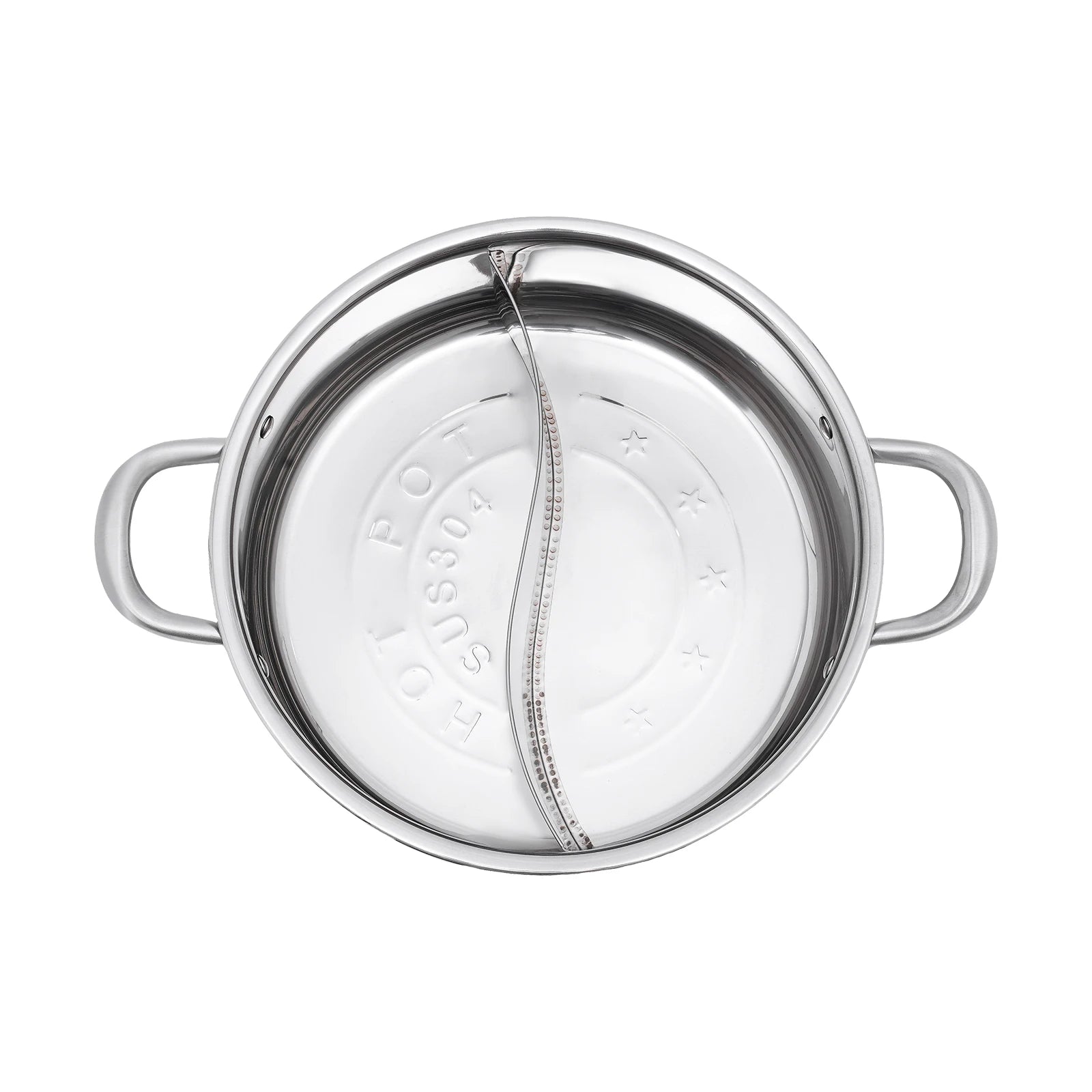 28/30 cm Stainless Steel Divided Hot Pots Cookware Hot Pot Compatible Double-flavor Hotpot Stock Pot with Spoon/ Leaky Spoon