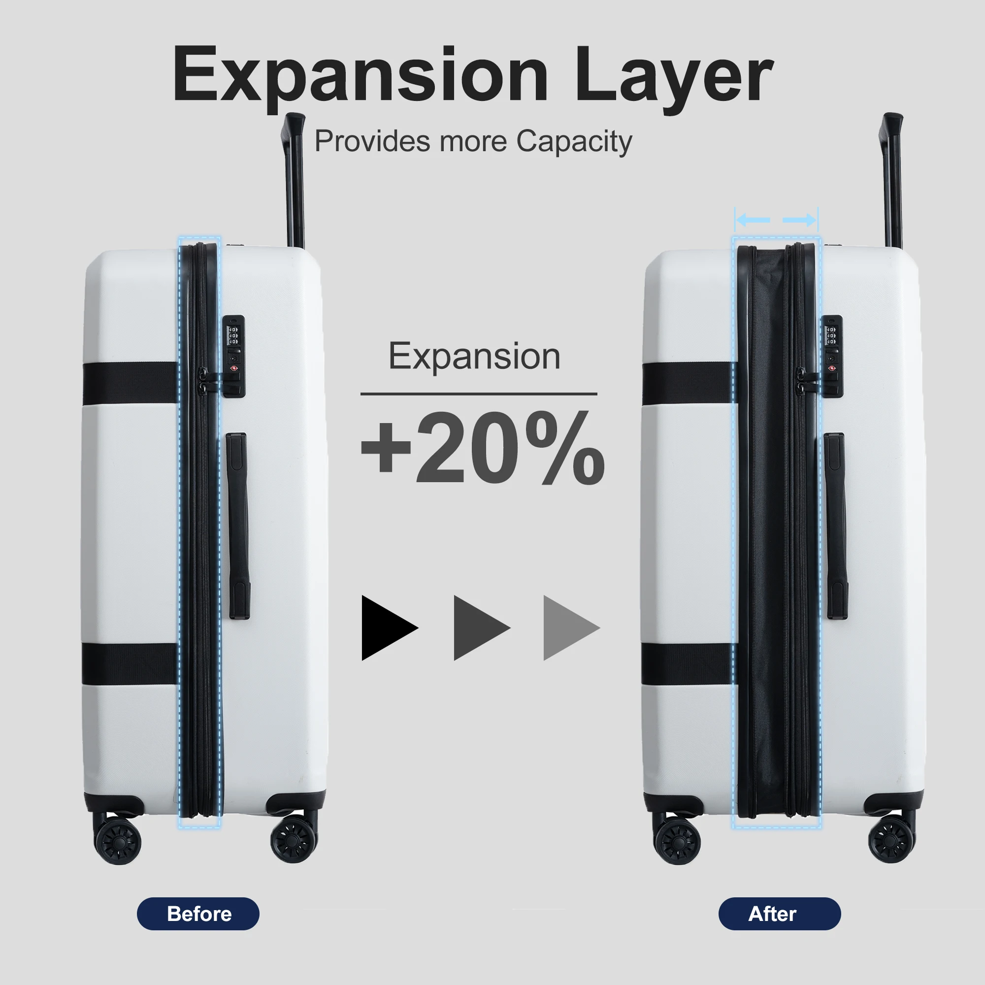 Sturdy Materials: Made from a tough blend of ABS and PC, this luggage set is highly durable and protects your belongings from impacts and scratches, ensuring they stay safe during travel.
