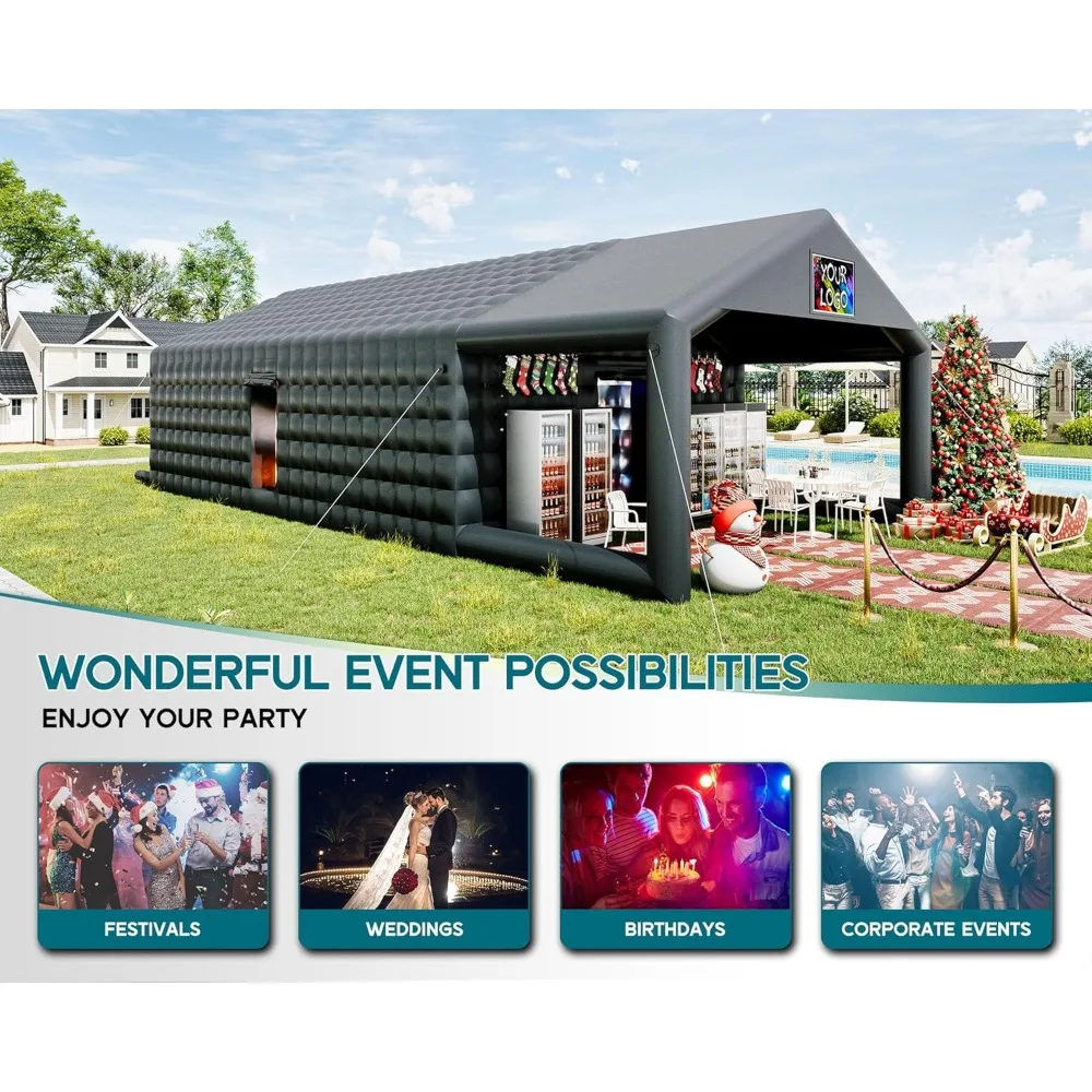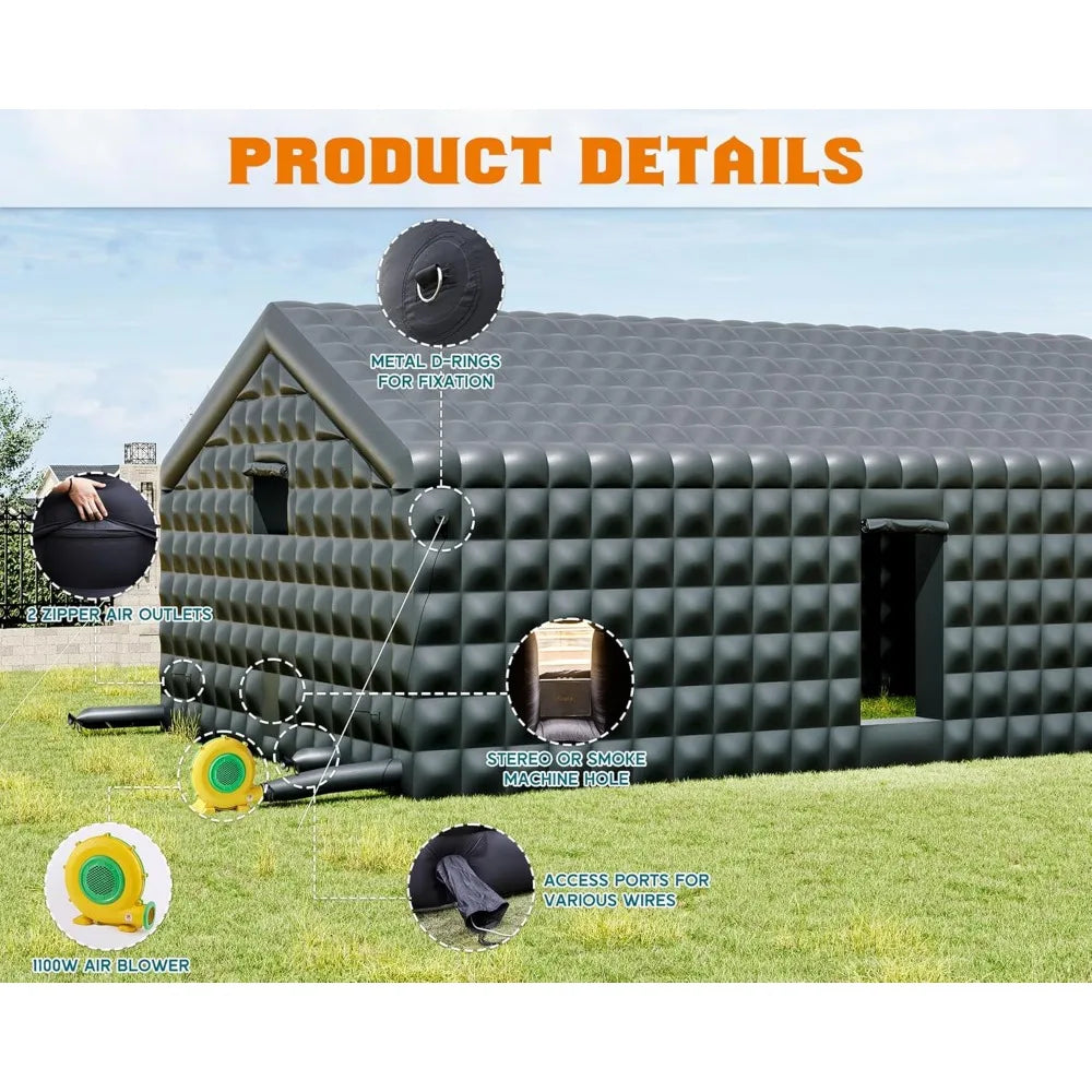 39x20x14 FT Large Black Inflatable Night Club Tent for Adults with Extra Pavilion Rest Area, Inflatable Nightclub