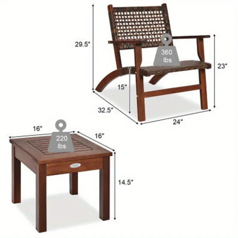 3PCS outdoor terrace rattan furniture set solid wood frame chair coffee table