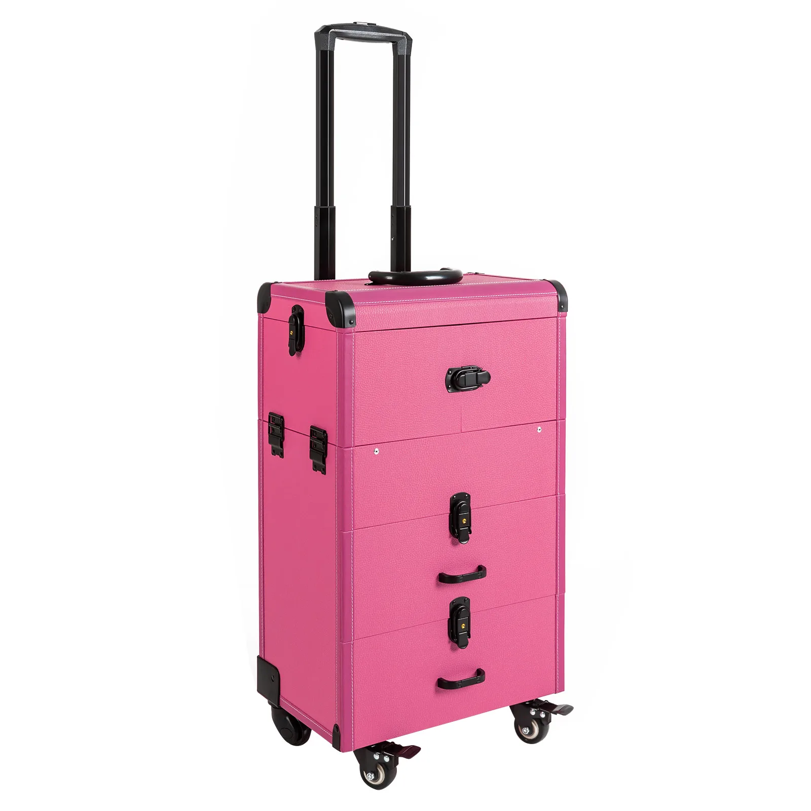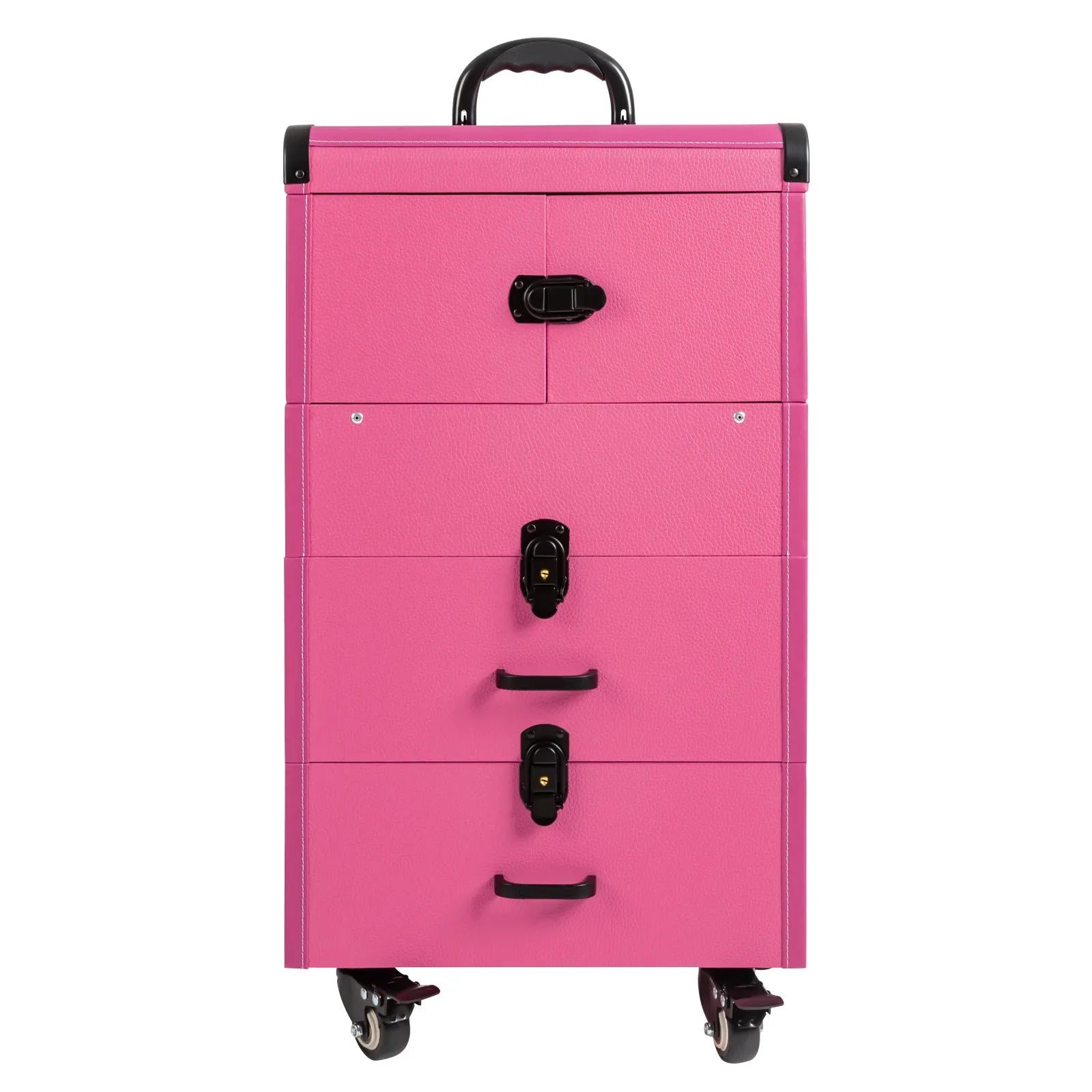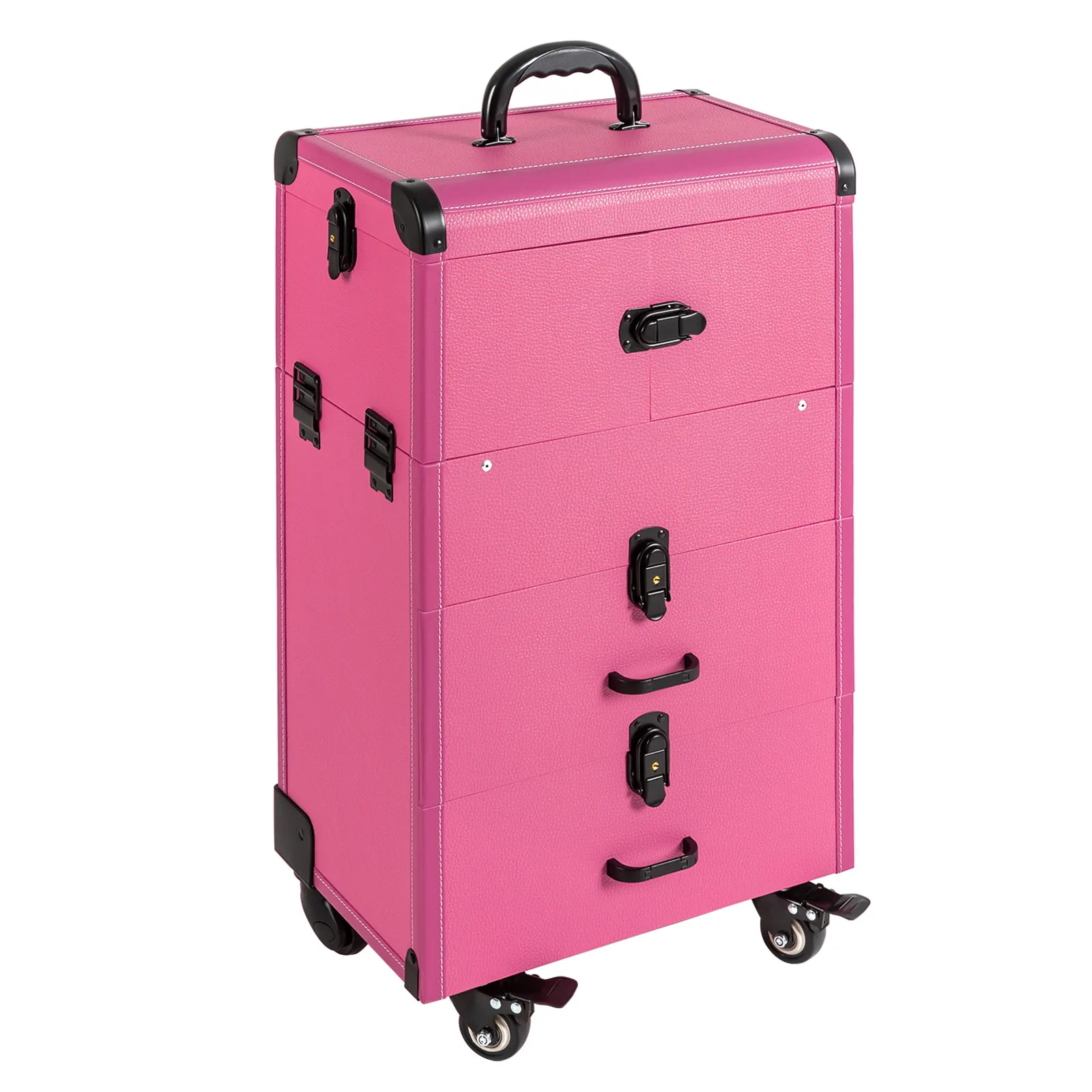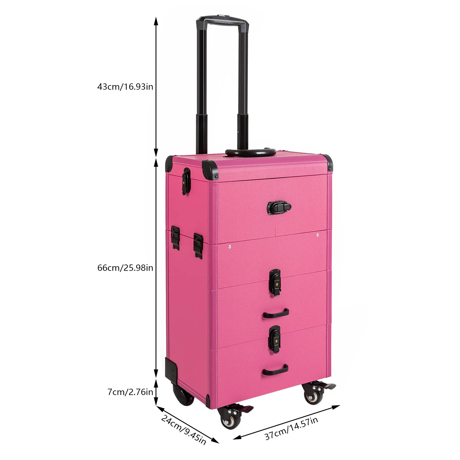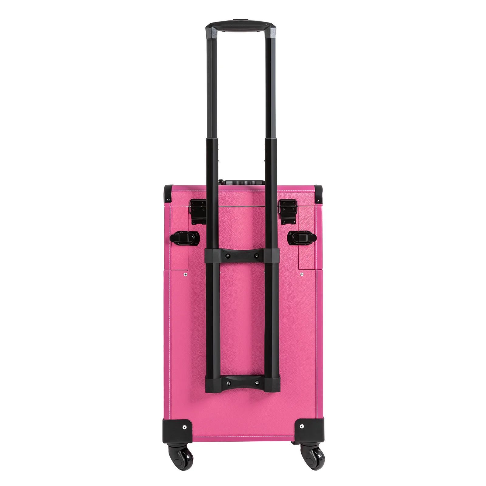 If you are a make-up artist or embroiderer who often needs to go out to work, you will need our makeup train case. It is made of premium material, sturdy and durable. 4 universal wheels and a large capacity make it an excellent makeup assistant when outgoing. With its beautiful appearance, it is an ideal gift for your mother, sister, or wife.In addition, locks and latches can ensure high safety, so you can use this item confidently.