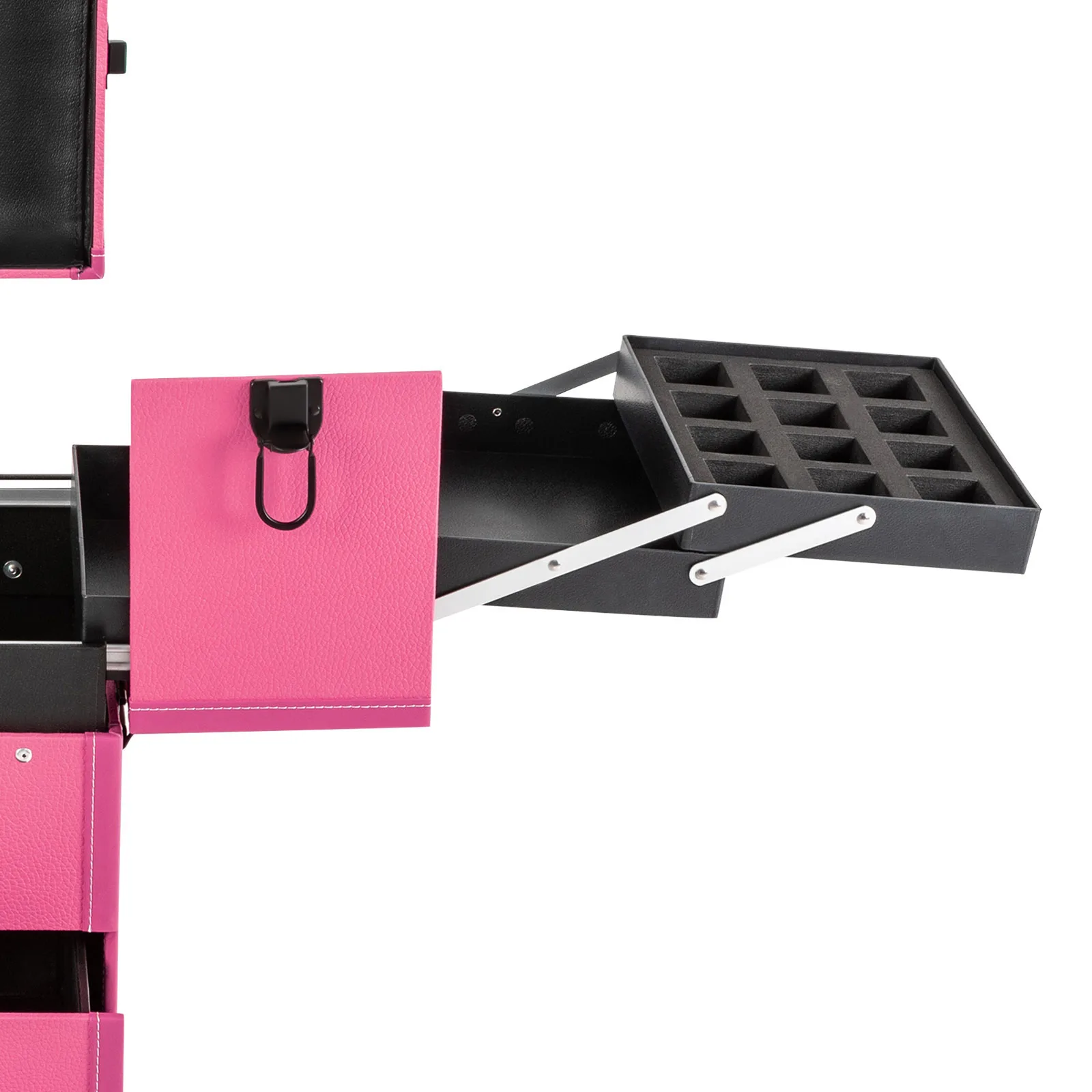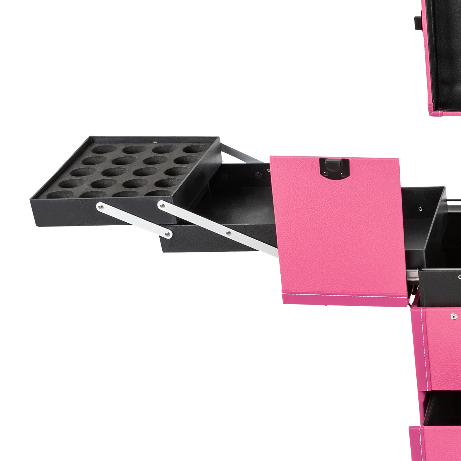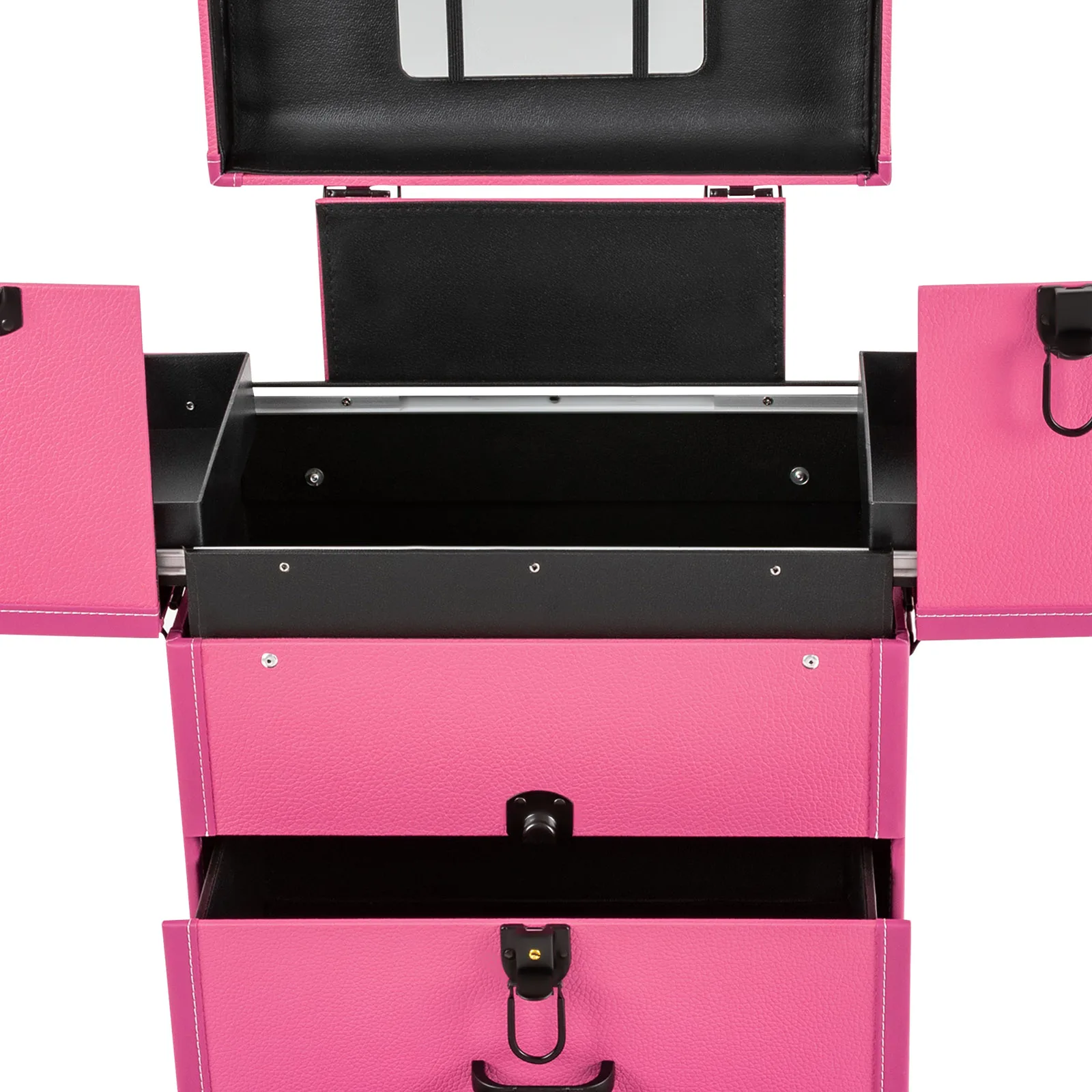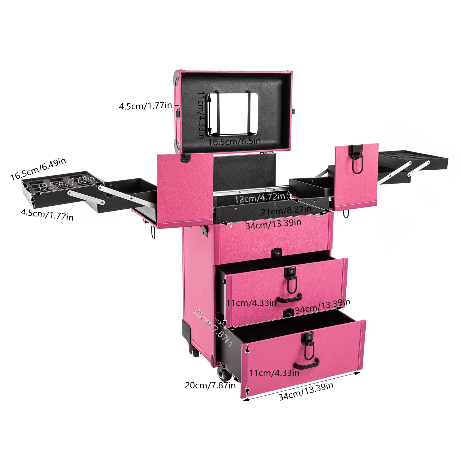 Professional makeup artists, hairdressers, beauticians, manicurists, beauty lovers, etc. can use this product to store cosmetics and makeup tools. It is ideal for makeup contests, wedding makeup scenarios, travel makeup, outdoor shooting, cinemas, dressing rooms, crew, tourism, beauty salons, and more.