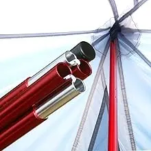 Pole can assist set up. Pole length equal the distance of center from corner. Unfold and Expand tent on the floor, place pole head on the peak loop and the end point to bottom loop, Fix bottom loops with stakes at the end of pole. For good ventilation, extend 1~2 hand length and secure by guy line.
