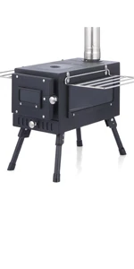 There is a window and a fire retardant stove jack for stove pipe. Flame retardant fabric can protect camper from skin burn.