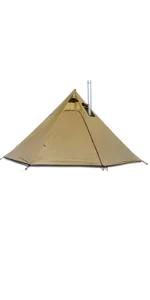 Sparks will emerge from the chimney which leads to forest fires if using a fuel containing broken particles and more dusts; hence, choose fuel carefully. It can't prevent the tent from being perforated by fire although the fabric of this tent is flame-retardant but can protect the personal safety of users. Please choose a stove with sufficient combustion, the insufficient combustion will also emit sparks and produce toxic gas which will pollute environment and poison people.