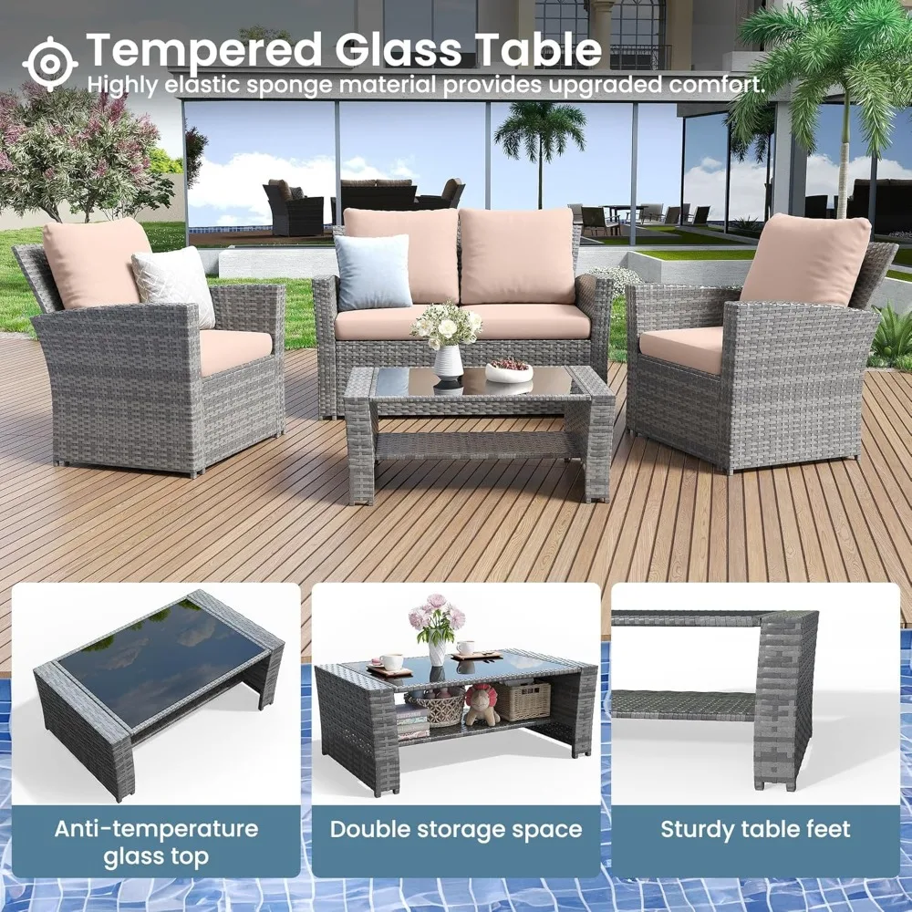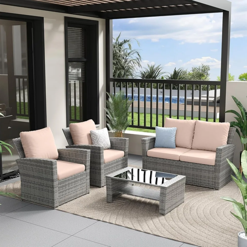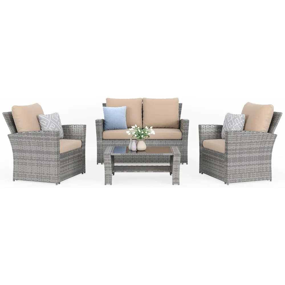 4 Pieces Outdoor Patio Furniture Set,Wicker Sectional Sofa Outdoor Patios Set Rattan Patios Furniture, Patio Conversation Sets