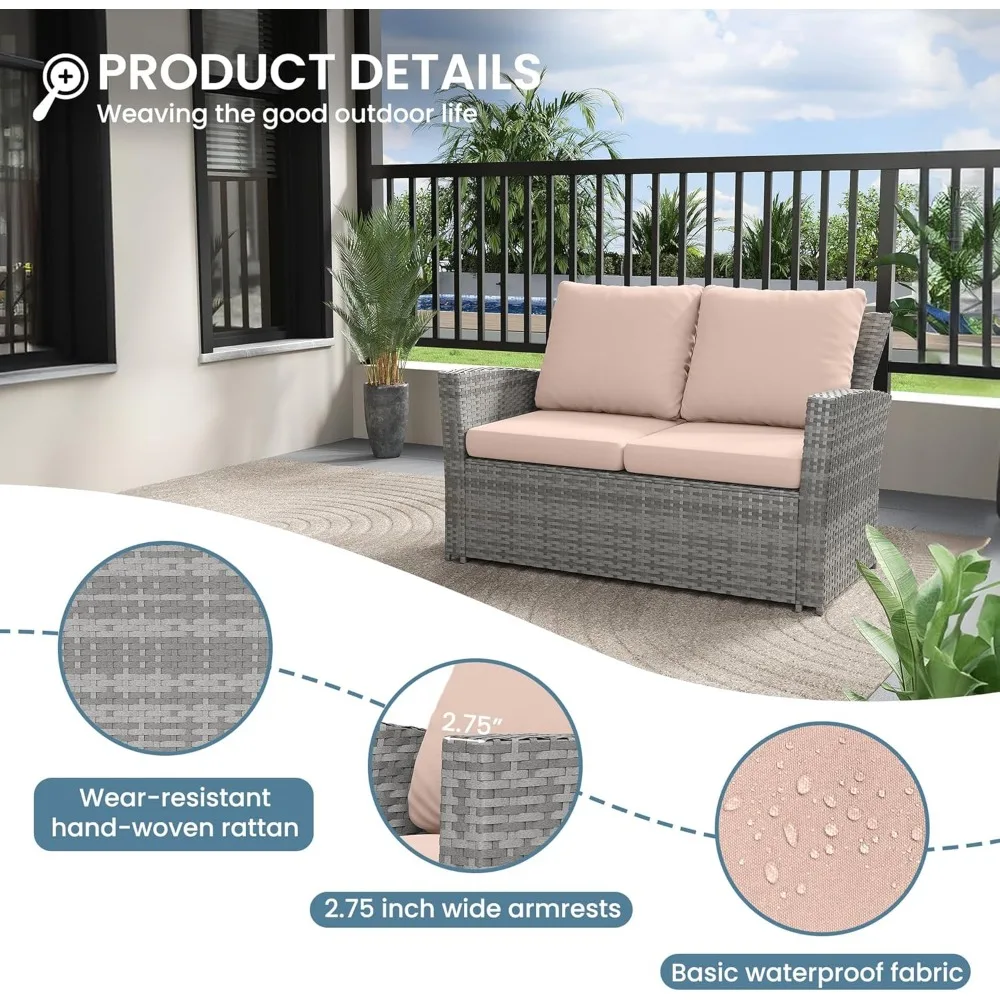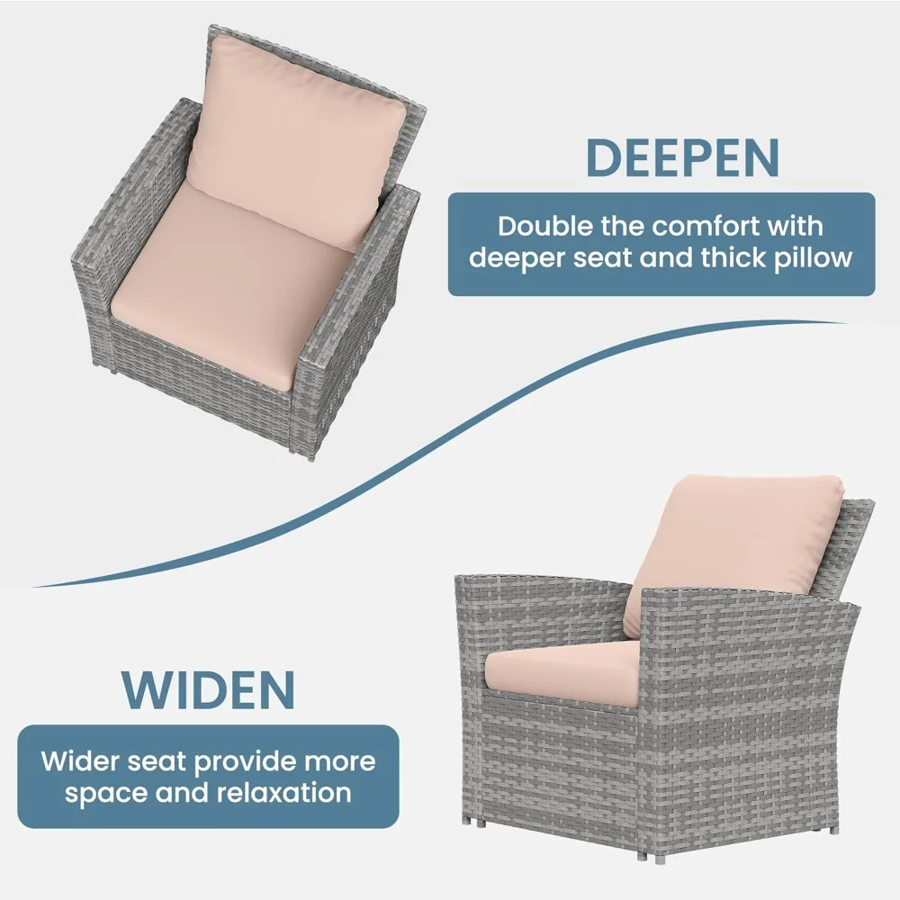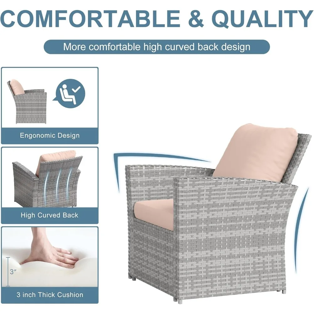 【Soft and Comfortable Design】This patio furniture set offers an exceptionally comfortable seating experience. The seat cushions and back pillows are filled with high-quality foam, providing both softness and support. The seat is spacious and deep, and the 3-inch thick cushion adds additional comfort. Adding this patio set to your outdoor area will enhance the beauty and elegance of your home