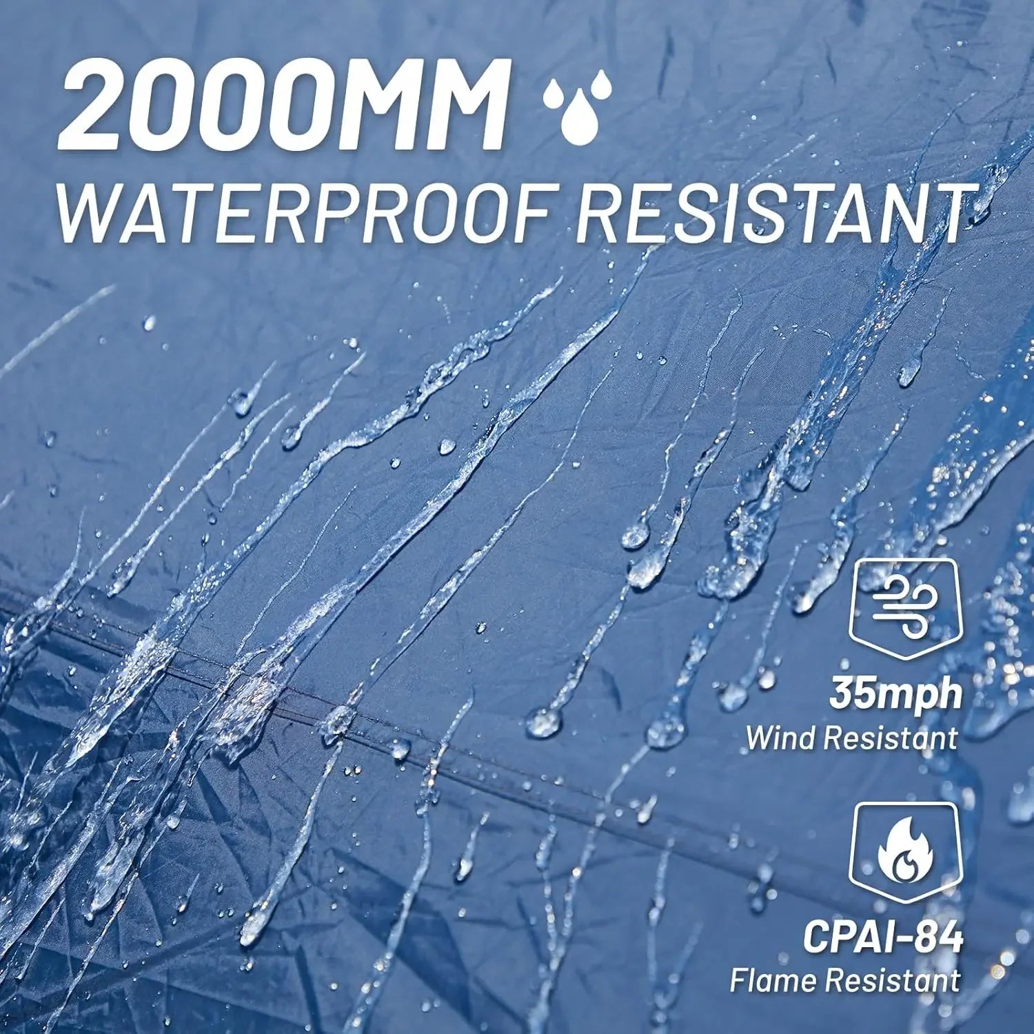 Weatherproof & Waterproof: Equipped with sturdy 66D taffeta polyester fabric, 2000mm of superior waterproofing, fully taped rainfly and sealed seams to ensure a dry and comfortable environment for your family. The included front porch provides extra water and weather protection. Sturdy fiberglass poles ensure stability for a long-lasting camping experience.
