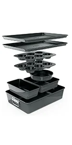 8-Piece Nonstick Stackable Bakeware Set Commercial Grade Restaurant Quality Metal Bakeware