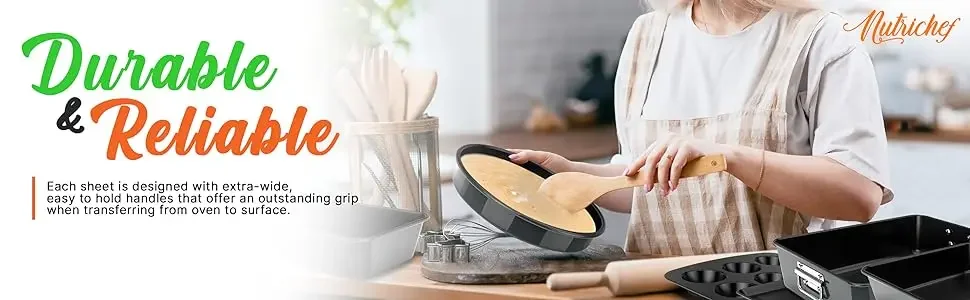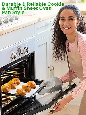 The reusable professional nonstick baking set molds feature a space-saving stackable wide tray pan design for convenient storage. It is fully compatible with kitchen ovens, countertop convection ovens, toaster ovens