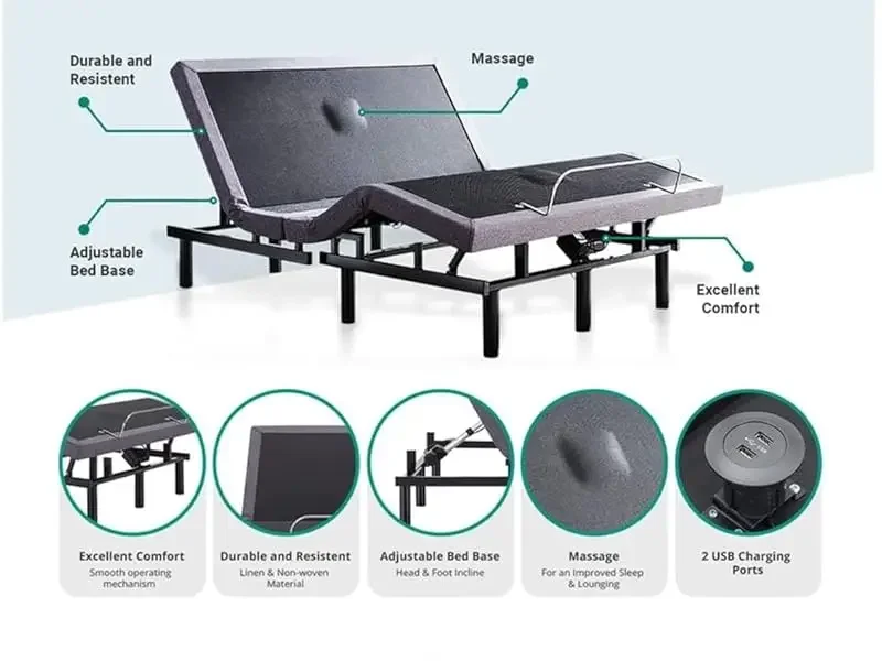 adjustable bed frame twin with Lumbar Support & Head Tilt, Foot Incline, Back & Leg Massage, USB Ports, Massage