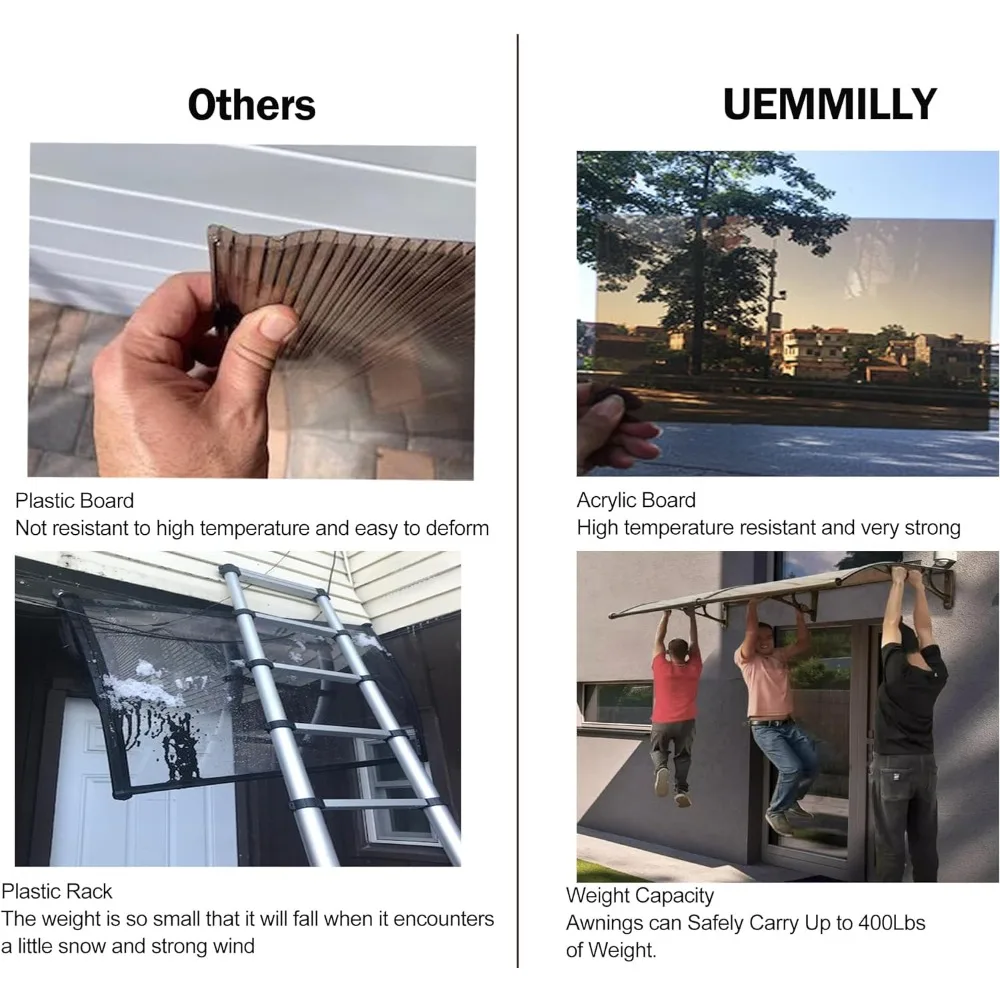 - 【UNIQUEST STRUCTURE】 : sun visor bracket adopts all-metal design, aluminum alloy can effectively resist corrosion, rust and aging. At the same time, it has a very high load-bearing capacity to protect the visor's firmness and stability. There is a separate drainage sink in front of the visor, so that it can be better discharged and will not flow to front of the visor, no longer wet pedestrians who passing through the visor.