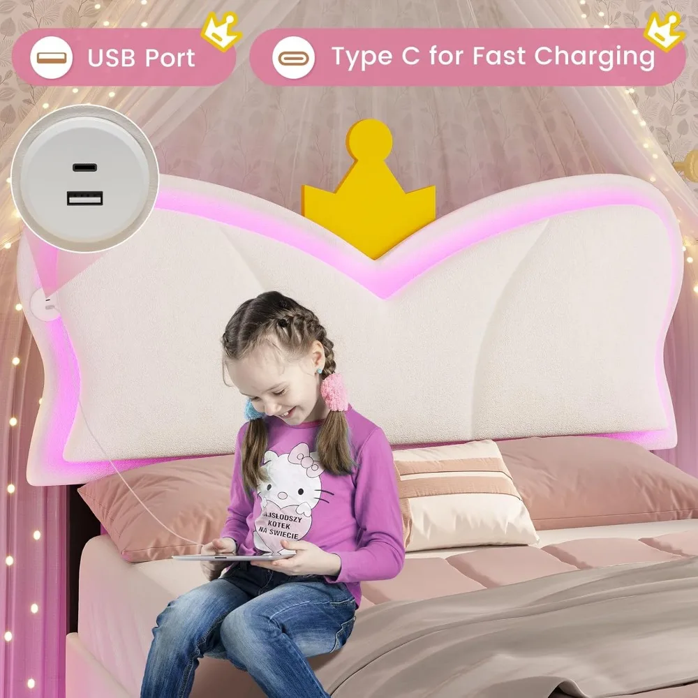 - 【Smart RGB LED Lighted Twin Beds】With built-in LED light strip on the headboard and under bed, this white twin bed frames with led lights comes with its own chic and elegant atmosphere. Customize your lighting with over 60,000 colors using the mobile app or remote control, adjusting brightness, color, mode, and timer settings to suit your preferences. Take it to the next level by syncing the LED lights with your music, perfectly for hosting a light show and home concert.