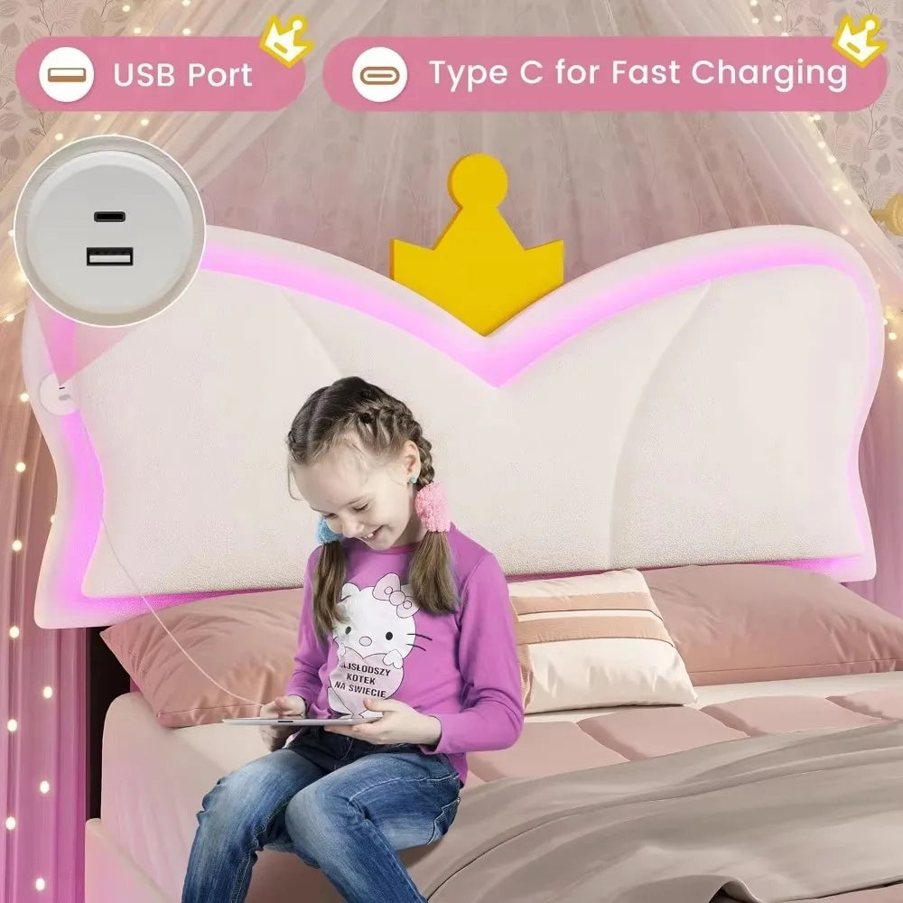 bedstead.Twin Bed Frames with LED Lights and Storage Drawer,Upholstered Bed Frame Twin Size with Height AdjustableCrownHeadboard