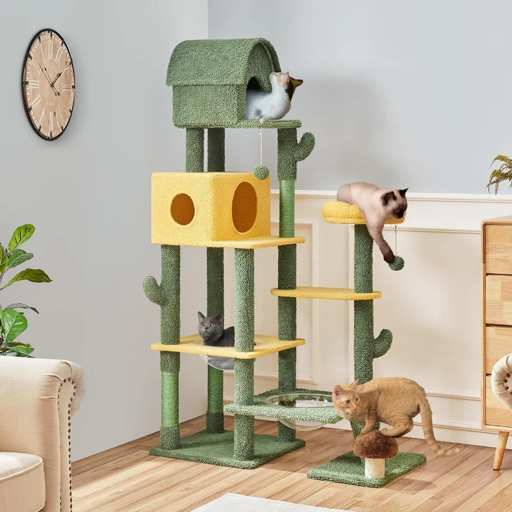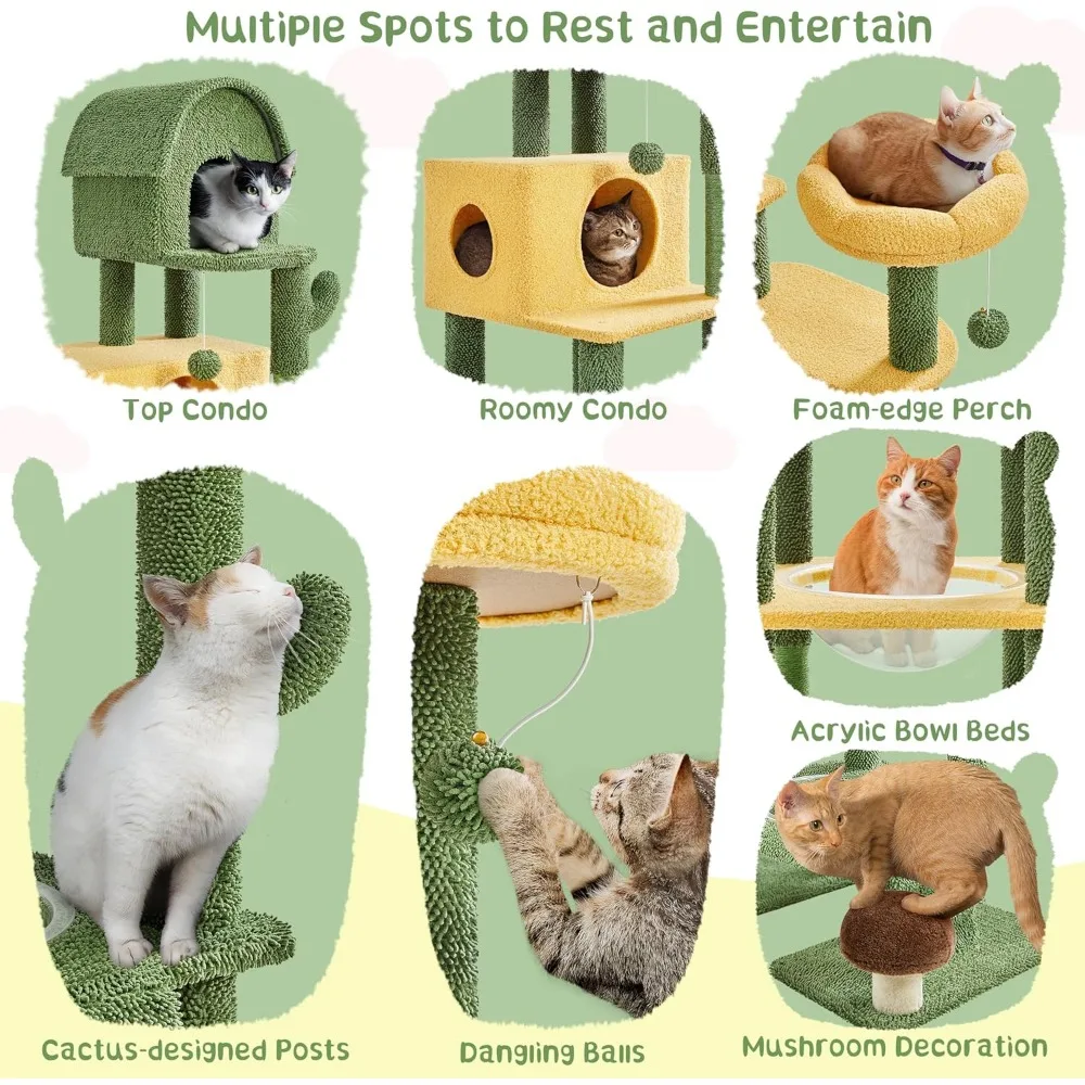 - DELIGHTFUL OASIS THEME: Inspired by the enchanted oasis, this cat tree features cactus-style posts, a flower-shaped perch, and a cute mushroom decoration that showcases a delightful and lush retreat. Its vibrant and lively colors make it the perfect piece of cat furniture to brighten up your room