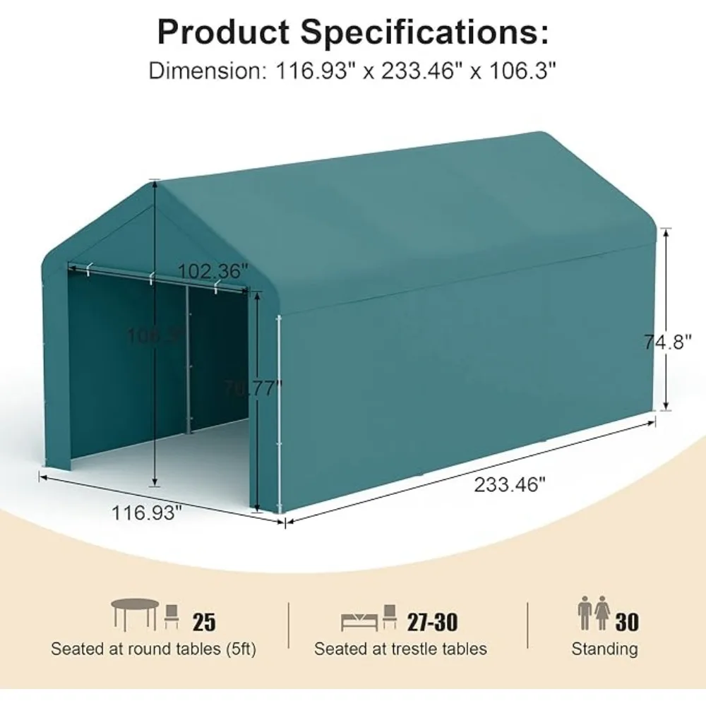 - 【Multipurpose Carport】10'x20' shelter to create a space at outside, can be used as party tent; car port; wedding tent; portable garage; storage shelter and commercial event tent.