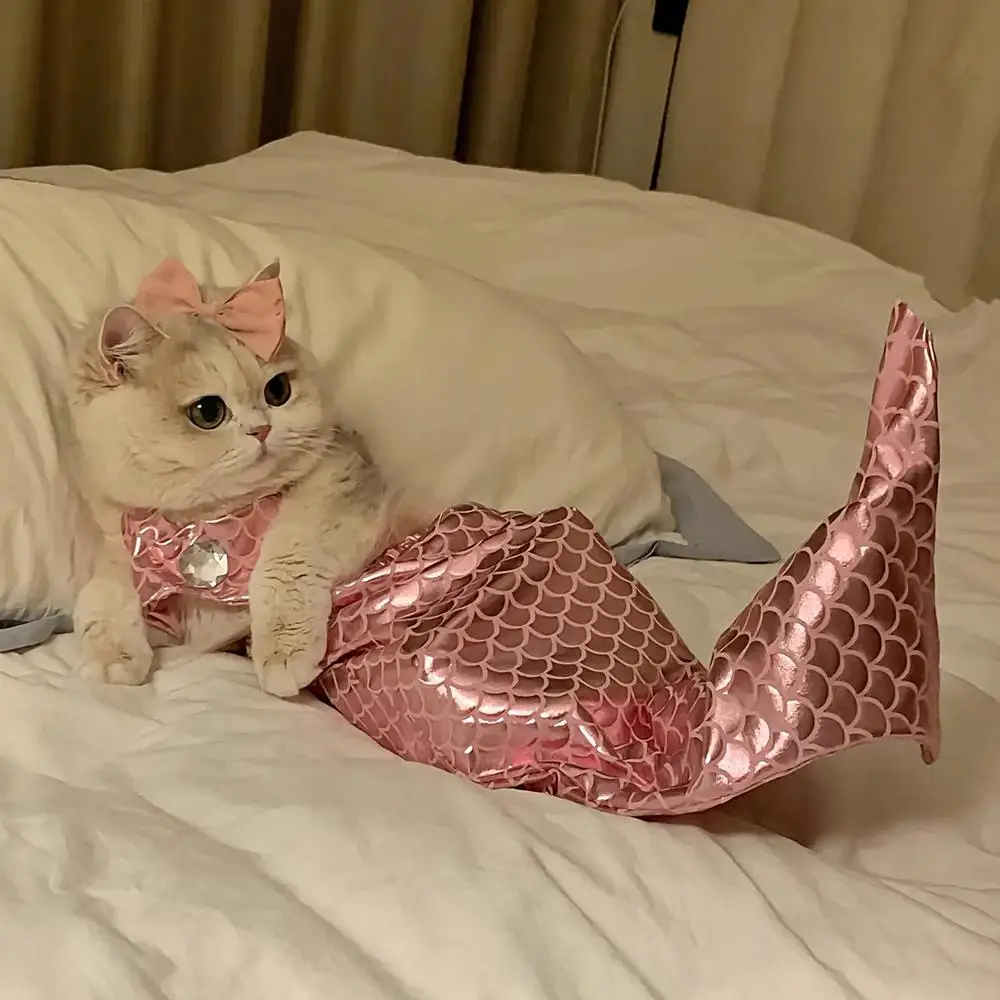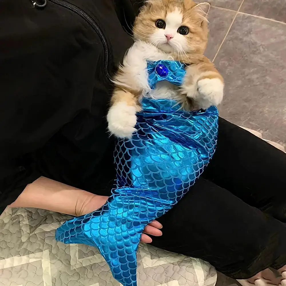 Cute Mermaid Pet Skirt Funny Creative Halloween Cats Cosplay Costume Pets Dressing Flash Puppy Dress Cat Dog Pet Clothes dress