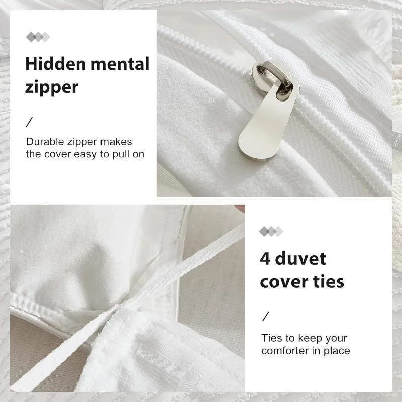 - 【Thoughtful Details】We choose the design of the envelope tuft pillowcase and the four corners of the stripes duvet cover are secured with ties.The hidden zipper allows you to seal your duvet faster than with a traditional button closure.