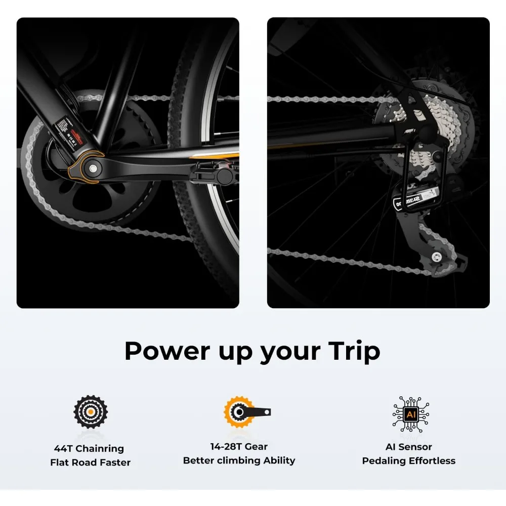 - Minimalist Appearance & Lightweight Frame: A highly efficient, city style affordable electric bicycle offering minimalist and sleek appearance and only weighs 49.6 lbs. The triangular high-carbon steel frame provides more stability