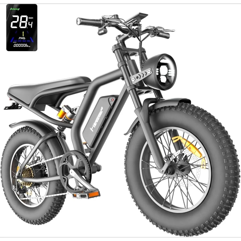 【Safety and Stability for Optimal Riding Experience 】 Our Dirt Electric Bike for Adults features a 5-stage full suspension system including two fork spring dampers, a seat spring damper and two 20 " puncture-proof fat tires that absorb shocks and bumps. Conquer all terrains with confidence. Dual disc brake system reduces braking distance for safer and more reliable riding even in extreme weather conditions