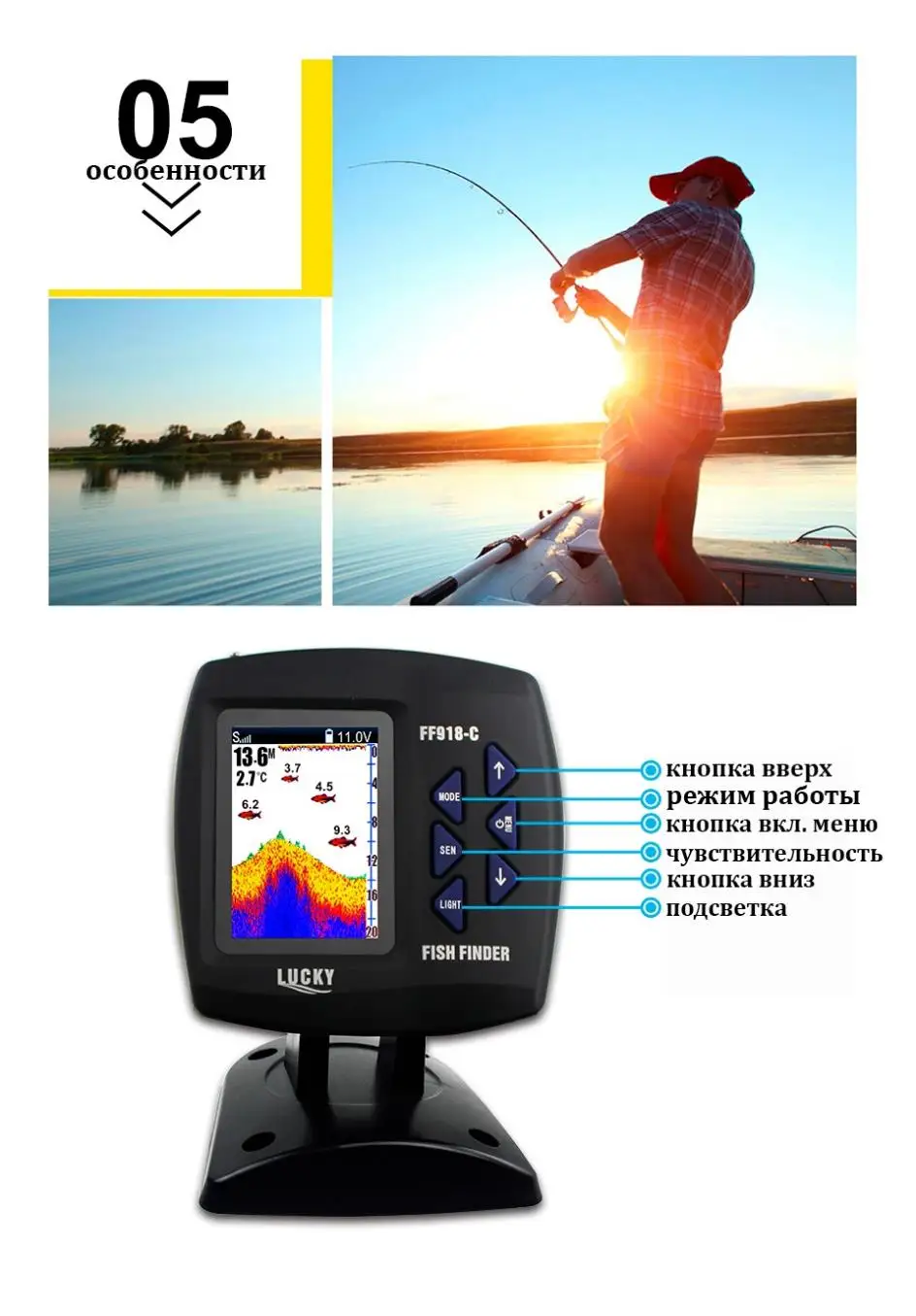 Waterdepth,watertemperature,fishlocationandbottomcontourcanbeconstantlyobtainedfromthewater.