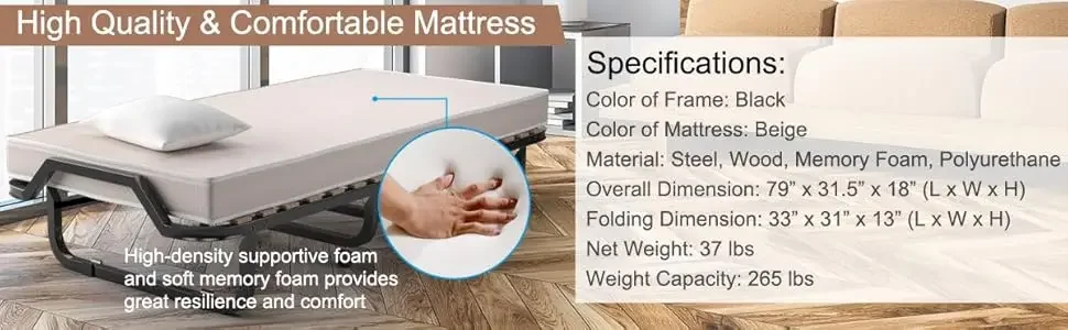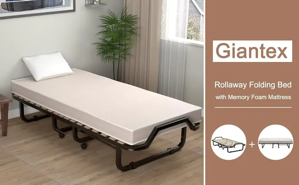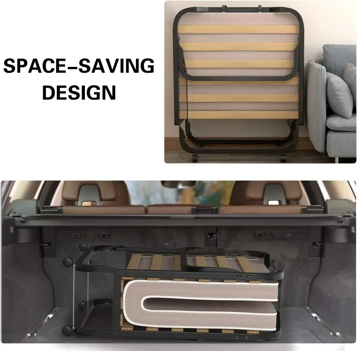 Folding Bed with 4 Inch Mattress for Adults, Portable Guest Bed with Memory Foam Mattress & Sturdy Metal Frame, Cot Size Fold up
