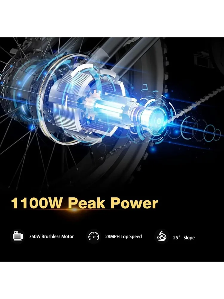 - 【Powerful Drive & Versatility】With a high-capacity 48V13Ah (624WH) Lithium battery and a potent 750W (1100W Peak) rear-drive motor, the Electric Bike ensures top-notch performance, effortlessly reaching speeds up to 28mph. Its multi-tooth thick tires enhance its mountain-climbing prowess and adaptability to diverse terrains, including hills, trails, the wilderness, and gravel roads. Venture beyond the city limits and explore the great outdoors with confidence and power.