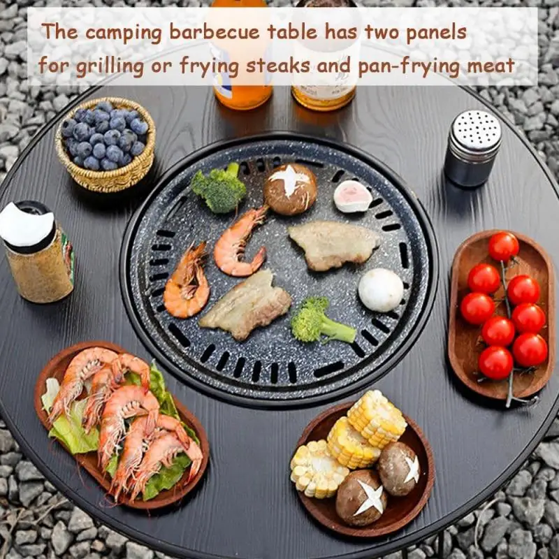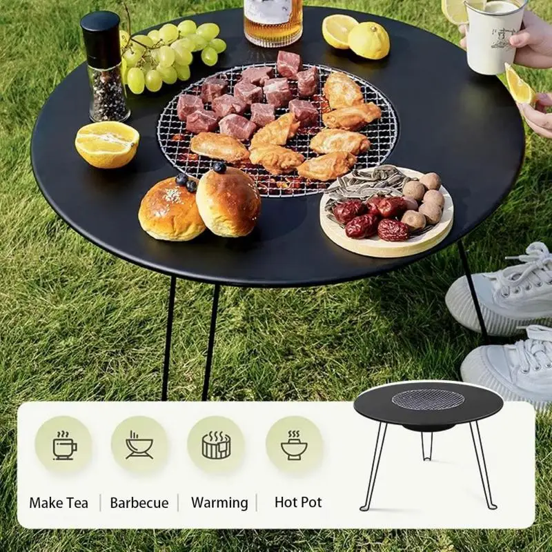Folding Round Table Camping BBQ Grill stand Protable Barbecue Brazier Grill Outdoor Picnic Foldable Fire Stove Charcoal grill