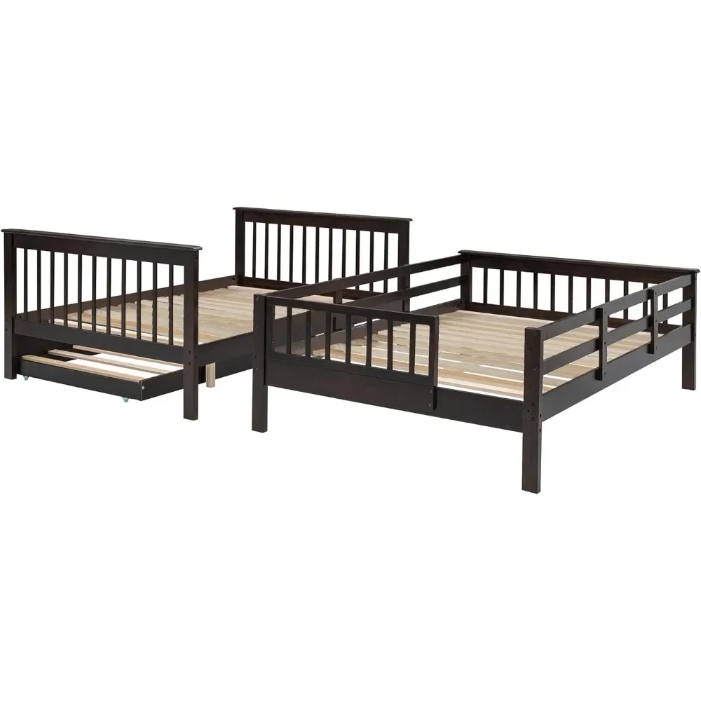 - [Full Over Full Bunk Bed with Trundle] - Our wooden full bunk bed with trundle, provides extra sleeping space, perfect for families with many children or many visitors. This bunk bed can be divided into two individual full size beds and a twin size trundle bed for even more convenience. functional and aesthetic, this bunk bed will enhance any bedroom.