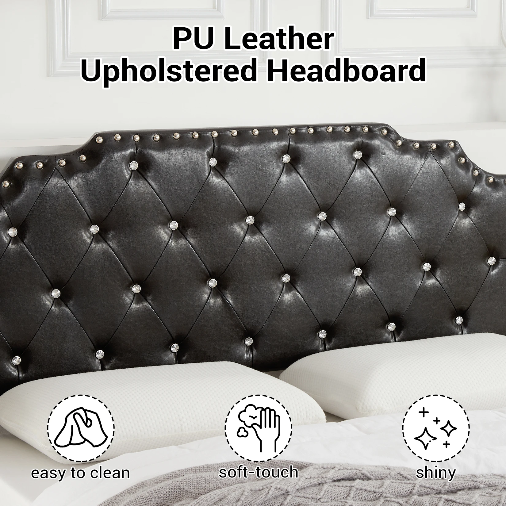 Luxurious Upholstered Headboard: Experience ultimate comfort with our PU leather upholstered headboard, filled with high rebound memory sponge. This bed frame offers excellent support for your back, ensuring a cozy and relaxing experience every night.