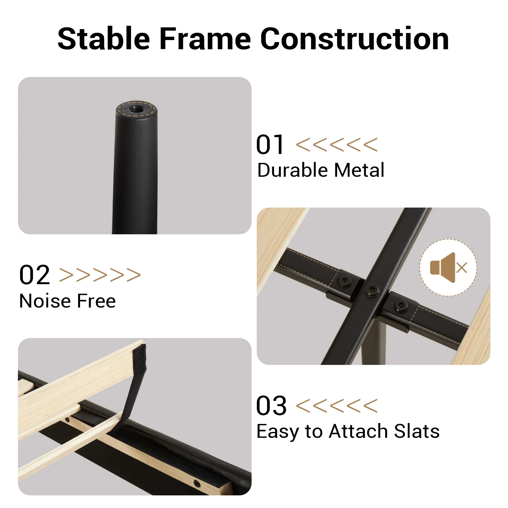 Quiet and Noise-Free: Enjoy a peaceful night's sleep with our noise-free design. The joints of the metal slats are silenced, and a built-in silent cotton strip prevents noise caused by metal friction, ensuring a quiet sleeping environment.