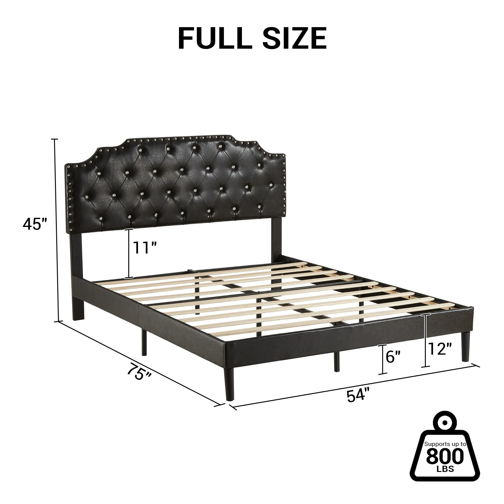 Full Size Bed Frame with Headboard PU Leather Upholstered Bed Frame Platform No Box Spring Needed
