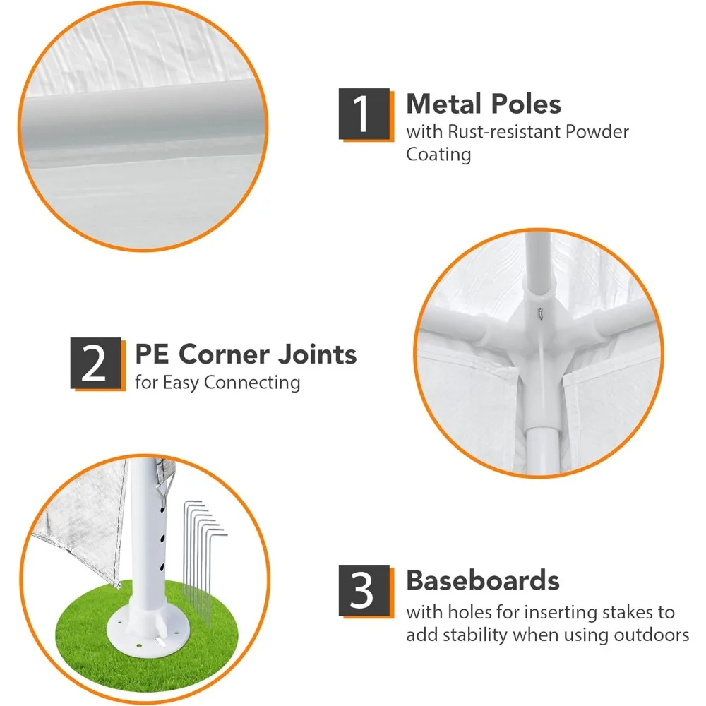 Using Suggestion: Extra straight fittings for stably securing the connection between tubes; Baseboard with holes for inserting stakes to ensure stability when using on the lawn, can use with sand bags (not included) to add extra stability; To prolong the service life, we do not recommend to use the tent when there is a strong wind or under bad weather