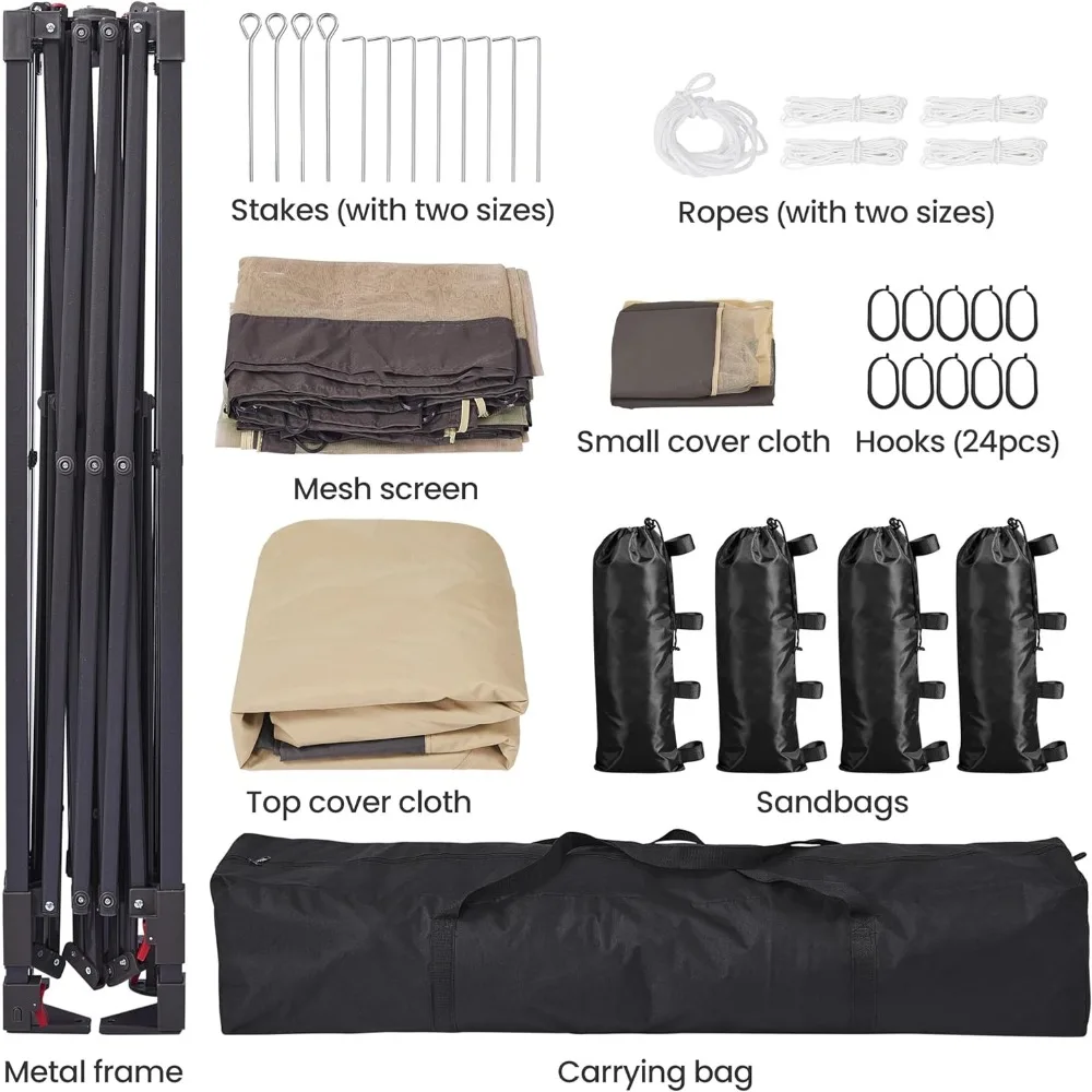 【Enhanced Ventilation with Vented Top】This patio canopy tent features a double-tiered top to promote effective heat regulation on warm days, improved air circulation, and enhanced wind resistance for a more enjoyable outdoor experience.