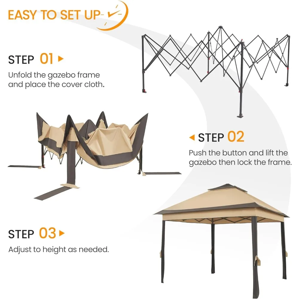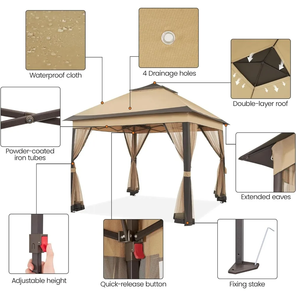 【Improved Versatility With Adjustable Heights】This 11 × 11ft gazebo tent features adjustable heights of 8.9', 9.2', and 9.5' to create an elevated and adaptable space for any event from outdoor dining to backyard parties.