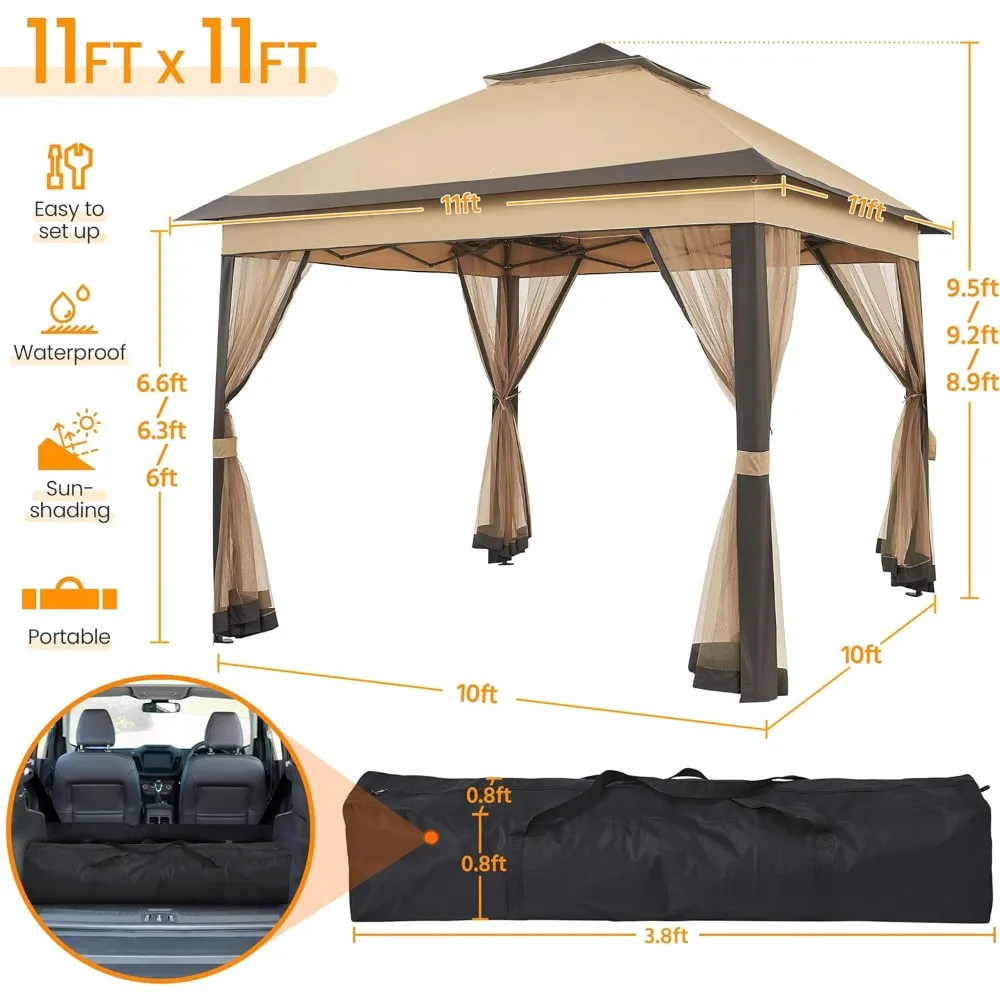gazebos for outdoor 11x11 Pop Up OutdoorCanopy Shelter, Gazebo Sun Shade Canopy Tent with 4 Sandbags,2 Tiers Roof,outdoor decor