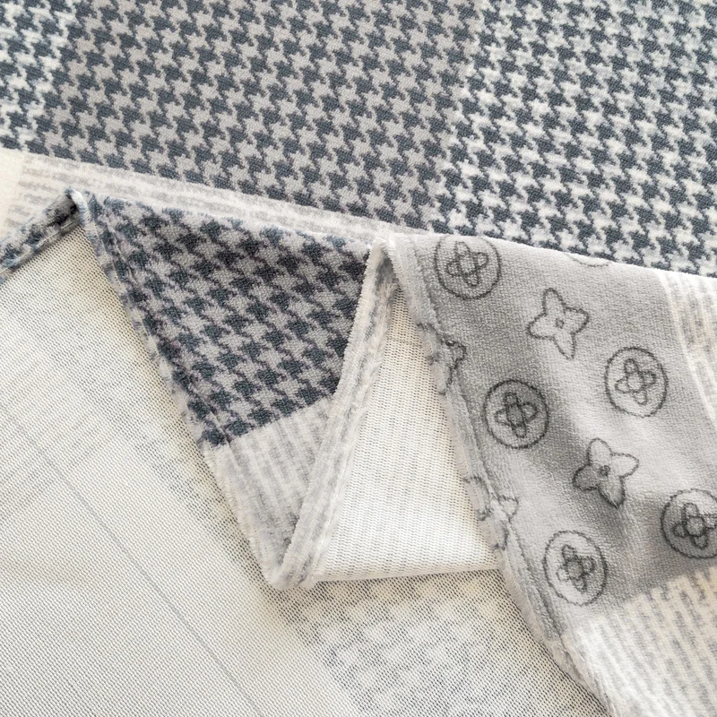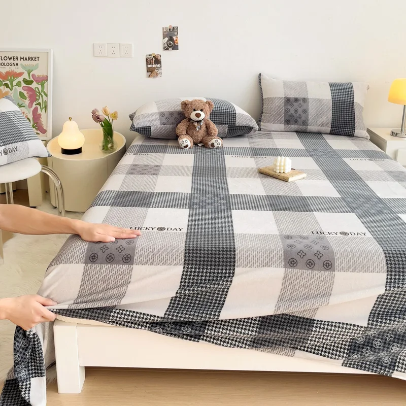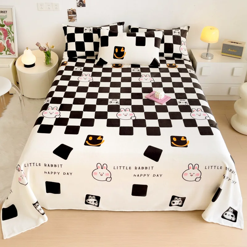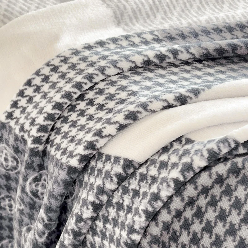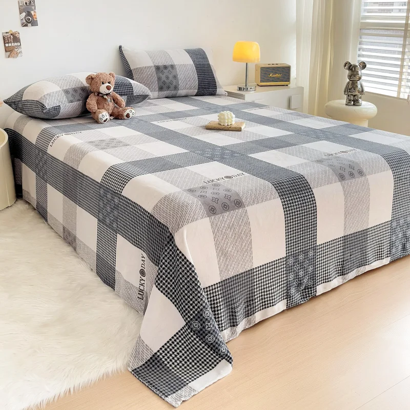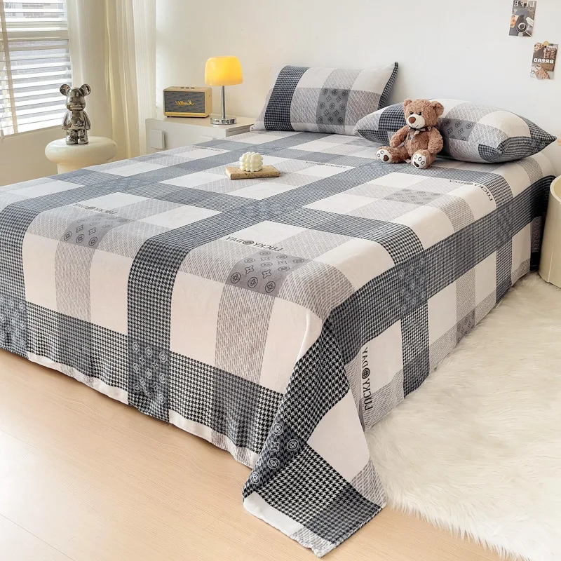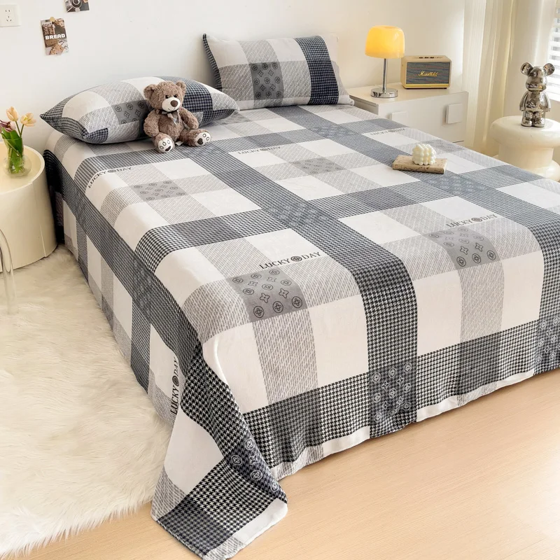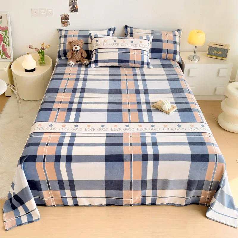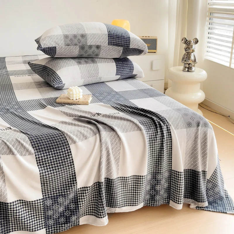Geometric Plaid Pattern Flannel Bed Sheet Set Super Soft Plush Bed Sheets with 2 Pillowcases Luxury Queen Size Bedding Set