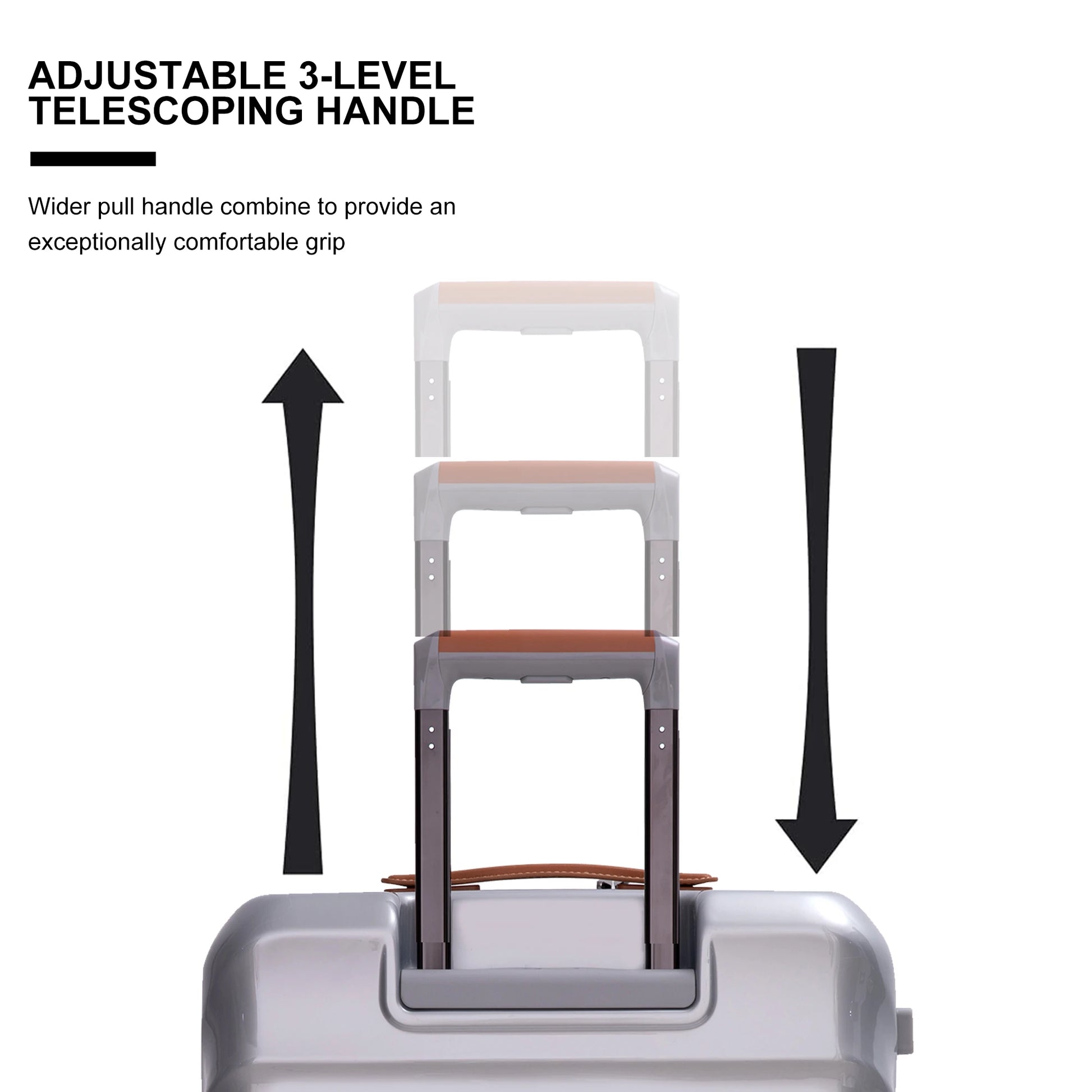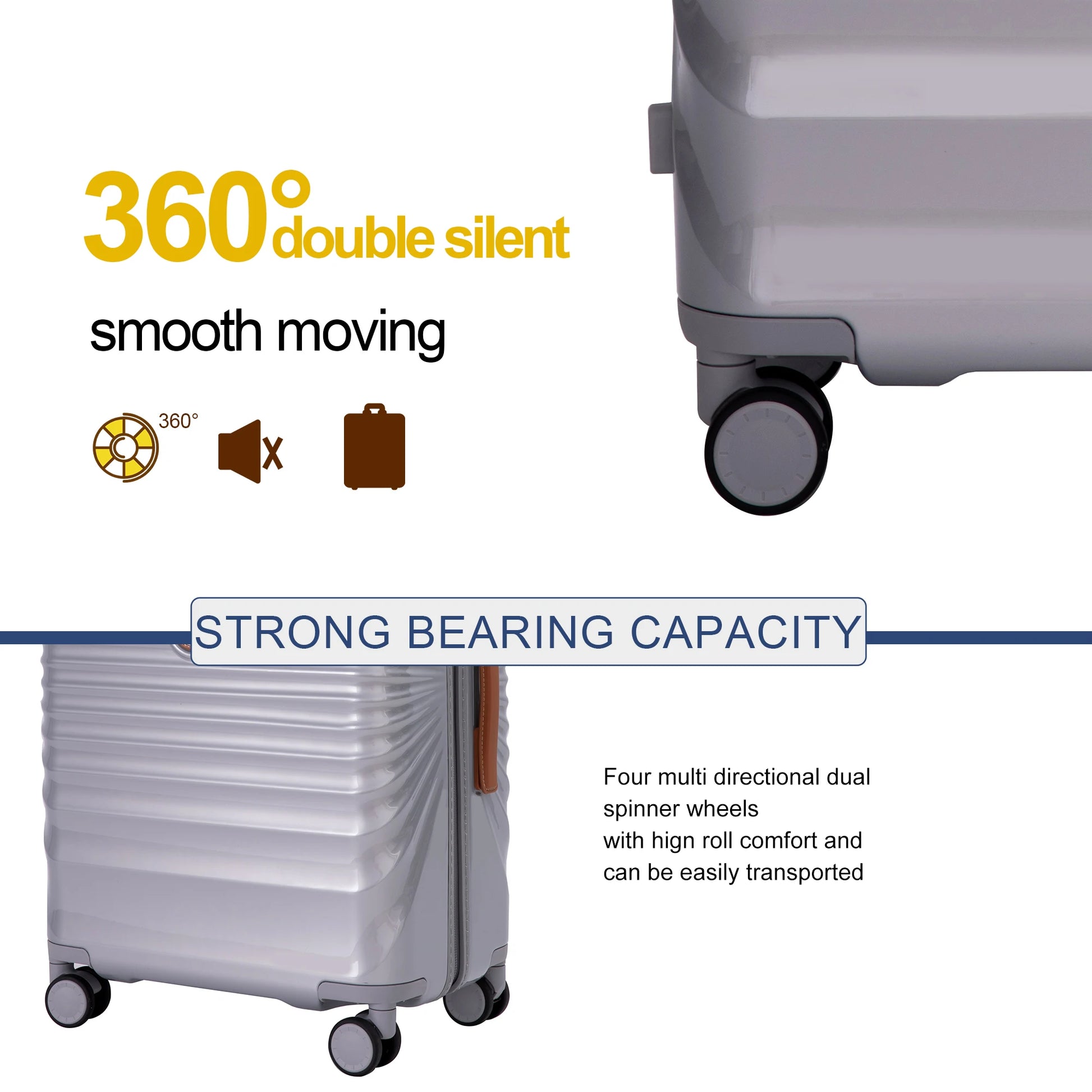 super quiet and durable 360° swivel wheels, a sturdy and adjustable handle with multiple height options,